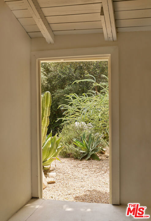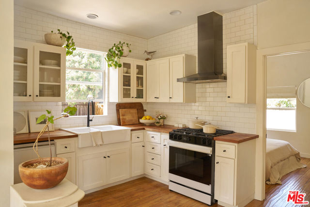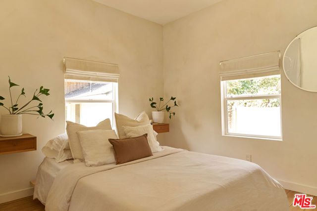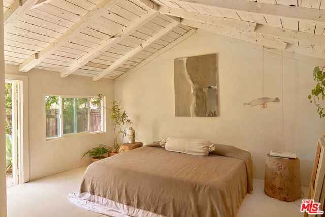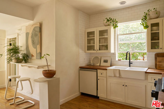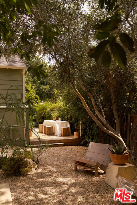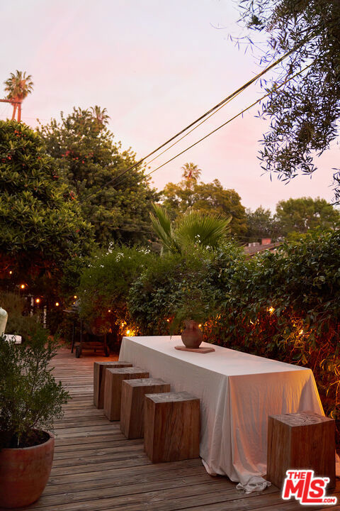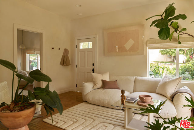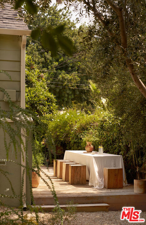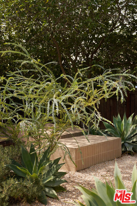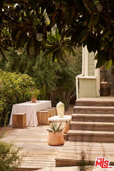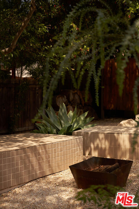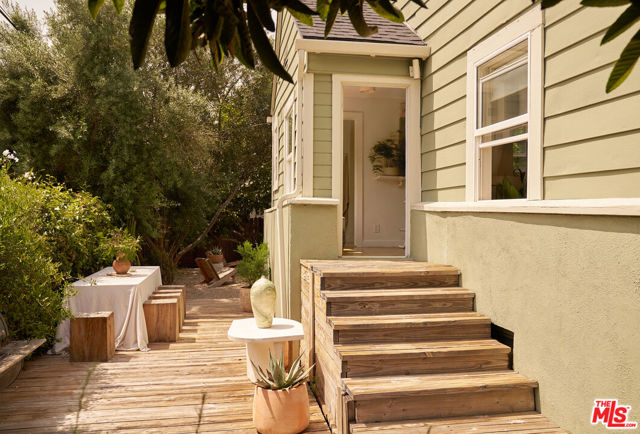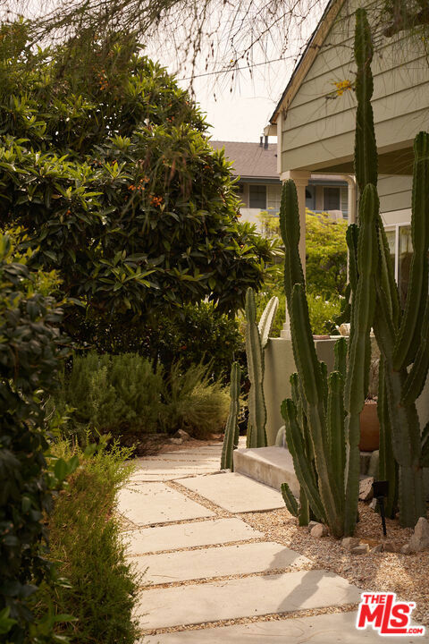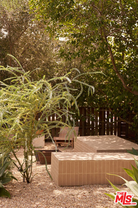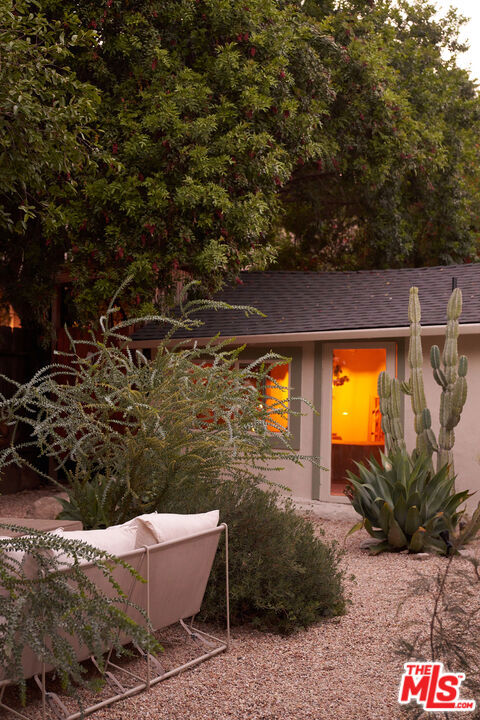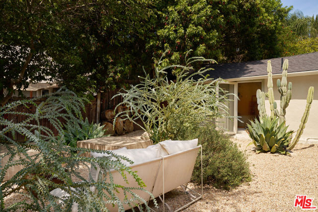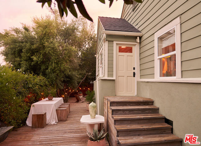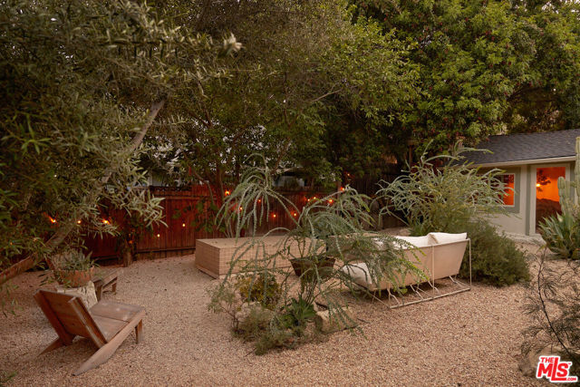Located on a corner lot and set behind reclaimed wood fencing wrapped in ivy and delicate white jasmine, this dreamy Highland Park bungalow feels like a hidden garden retreat in the heart of the city. Completely private and overflowing with charm, the property unfolds through a series of beautifully layered outdoor spaces where worn wood decking, aged hardscape, and pea gravel pathways create an atmosphere that feels both grounded and transportive. Thoughtfully designed with a rich mix of California-native and drought-tolerant landscaping, the grounds are filled with California buckwheat, sculptural San Pedro cactus, fragrant lavender and rosemary, cowboy sagebrush, eucalyptus, and flowering accents that soften every edge. Mature olive, guava, kumquat, and pepper trees add texture, shade, and a sense of abundance, creating an outdoor setting that feels lush, whimsical, and deeply loved. Set on approximately 4600 SF of grounds, the property feels grand, designed to be lived inside just as much as outside. There are inviting spaces to dine al fresco, gather with friends around the fire pit, or simply enjoy the beauty of the surroundings. Custom seating finished with tile from Orca Living adds another thoughtful design moment, while the entire landscape feels curated yet effortless, blending seamlessly with the warmth and soul of the home itself. Inside, the main residence is a sun filled two bedroom, one bath California bungalow with large entry porch to enjoy your morning tea/coffee and an open, easy flow with strong connection to the outdoors. Windows cast beautiful light throughout the interiors while the Portola-painted walls, hardwood-style flooring, designer Cle tile in bath, and patinated fixtures give the home a layered, soulful character. Enjoy cooking in your darling kitchen with butcher block countertops, farm sink with large window overlooking the gardens and built-in dishwasher. Every room has windows showcasing the beautiful outside grounds. The detached garage has been converted into a flexible bonus space that functions as a third bedroom, studio, or workshop. Complete with pitched ceilings, large window, a second powder bathroom, laundry, and soft lighting, it offers the same charm and intentionality found in the main house. The property has been lovingly cared for with a new roof, tankless water heater, recessed lighting, updated sewer, 200amp electrical panel, and central NEST hvac system while the large driveway provides onsite parking for two cars. Located in the heart of Highland Park just three blocks from Figueroa, The Goldline Metro, and 110 fwy, this home places you moments from the neighborhood's beloved boutiques, restaurants, cafes, nightlife, museums, and art galleries. It is a rare offering that feels tucked away and peaceful, yet completely connected to the energy and culture that make Highland Park so special.