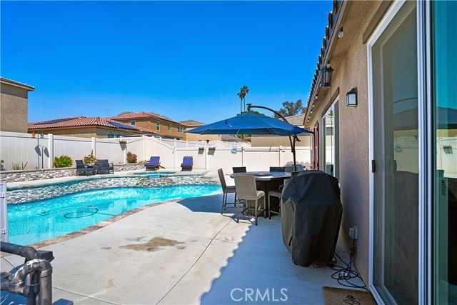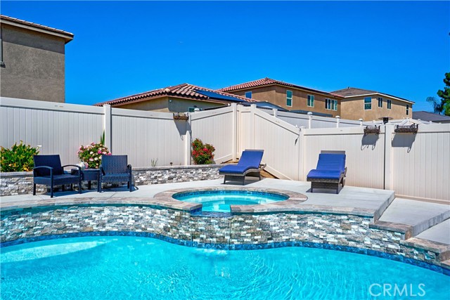 Built in 2022, this stunning 3-bedroom, 2-bath home is located in the highly desirable Spring Mountain Ranch community of Riverside, offering the perfect blend of modern design and everyday comfort. Step inside to find beautiful laminate flooring throughout and an open-concept layout ideal for both entertaining and daily living. The spacious kitchen features sleek granite countertops, ample cabinetry, and a seamless flow into the living and dining areas. Enjoy resort-style living in your own backyard with a sparkling pool and spa—perfect for relaxing or hosting gatherings year-round. Energy efficiency is a major bonus with fully paid-off solar, helping keep utility costs down. Conveniently located close to parks, shopping, and easy freeway access, this home is also within close proximity to Sandals Church. This move-in-ready home combines style, functionality, and upgrades you’ll love—don’t miss your chance to make it yours!