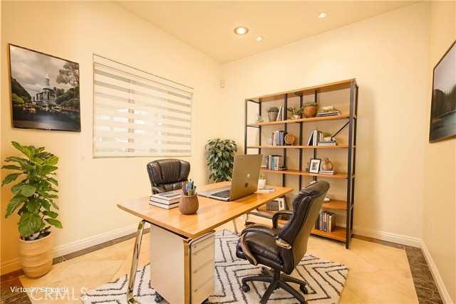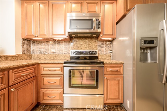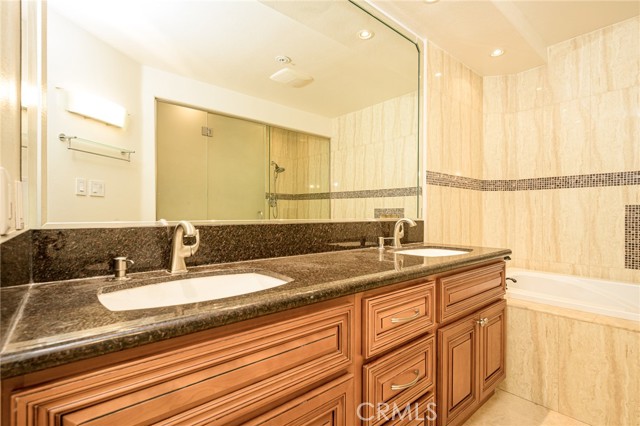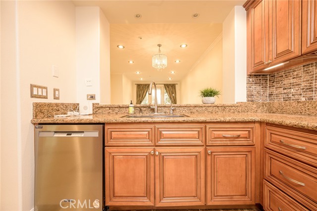 Resort style living at The Metropolitan. HIGHLY UPGRADED very large one bedroom plus den that can be used as an office or second bedroom. Beautiful newer carpeting in living room. Newer recessed lighting throughout and a marble cased gas fireplace . Office/den/second bedroom features recessed lighting with dimmer, beautiful stone flooring, and custom window shades. Kitchen features newer granite countertops, beautiful custom cabinetry throughout, reconfigured pantry and washer/dryer room, stainless steel electric oven and range, dishwasher, washer, dryer and refrigerator all included in sale. 9-foot ceilings throughout. Bathroom features dual vanity with stone countertops and custom cabinets with lots of storage, private toilet & walk in shower with custom glass doors adjacent to large stone cased soaking bathtub. Bedroom has spacious walk-in closet, recessed lighting, custom draperies and newer carpeting. Patio is very large with lush tropical landscape views. This unit has 2 side by side parking spaces #190 & 191 which is rare for this model. Brand new HVAC system. Close to South Coast Plaza & Fashion Island/ Newport Beach, all the best Orange County has to offer is at your doorstep. Within a few minutes of JW Airport & 3 major freeways this ideal location is for the most cosmopolitan of residents. Features pool, spa, gym & guarded gate. Water, hot water trash, and gas are all included in HOA dues. Great opportunity here! Hurry!