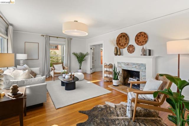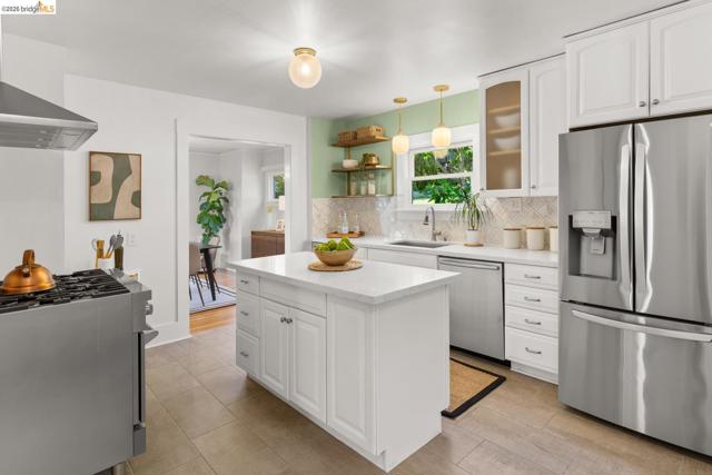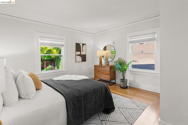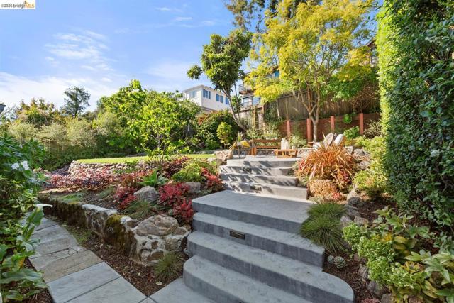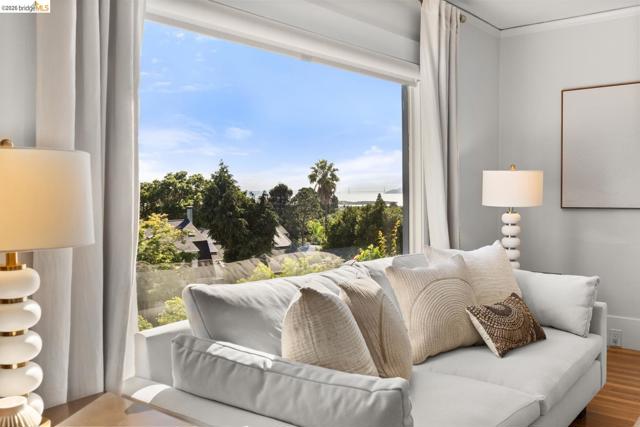 Sweeping panoramic views of the Bay, San Francisco skyline, and Golden Gate Bridge define this sun-filled North Berkeley Traditional. With classic elegance and unforgettable views, this bright living and dining rooms frame the breathtaking scenery, creating an inviting setting for both everyday living and entertaining. The stylishly updated eat-in kitchen features a 6-burner range, breakfast nook, and convenient half bath nearby. Upstairs, three bedrooms include a serene suite with spectacular views and an adjoining room ideal for a nursery or home office. The beautifully landscaped backyard offers a rare level lawn, play area, and inviting patio - perfect for outdoor enjoyment and gatherings. A long driveway provides ample tandem parking, and the spacious lower-level basement includes laundry, storage, and workshop potential. Ideally located just one block from Marin Circle, Solano Avenue, the Gourmet District, and Transbay bus access, with cafés, shopping, and dining just moments away. Berkeley living at Its finest! BESO SCORE 1 Views: Downtown