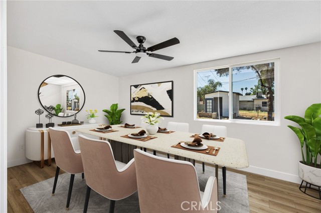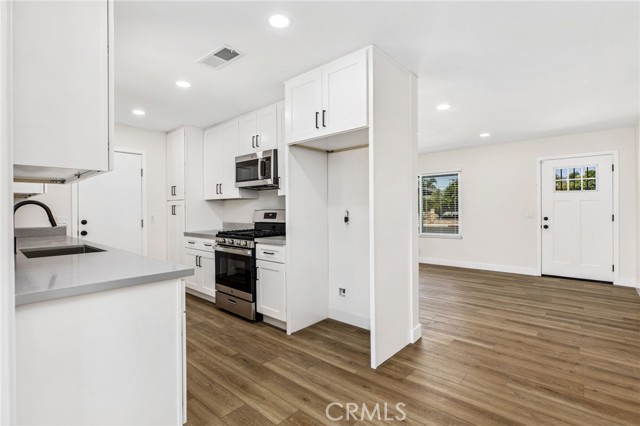 Welcome to 579 W Mayberry Ave in Hemet, a fully reimagined home where modern design meets everyday functionality. Originally built in 1965, this property has been completely rehabbed from top to bottom, offering the feel of new construction without the price tag or wait. From the moment you step inside, you’ll notice the clean, open layout paired with brand new luxury vinyl plank flooring that runs seamlessly throughout the home, creating a warm yet contemporary feel. The living space is filled with natural light and flows effortlessly into the fully updated kitchen, designed with both style and practicality in mind. The kitchen features all-new gray quartz countertops, crisp white cabinetry, modern hardware, and stainless steel appliances, delivering a sharp, high-end look that buyers want. It’s a space that feels fresh, functional, and ready for daily living or entertaining. The upgrades don’t stop there. This home includes a brand new roof, a new HVAC system, new ducting, updated finishes throughout, and remodeled bathrooms with a clean, modern aesthetic. Every detail has been thoughtfully completed, eliminating the need for any future projects or repairs. Step outside and you’ll find one of the property’s biggest advantages—a huge backyard with endless potential. Whether you envision a pool, outdoor kitchen, garden, or play space, this yard is a blank canvas ready for a buyer to design and customize to their exact liking. It’s rare to find this kind of usable space paired with a fully renovated home. In addition, the property features a detached shed that’s ideal for a workshop, storage, or hobby space—perfect for buyers who need extra functionality beyond the home itself. Located in an established Hemet neighborhood, 579 W Mayberry Ave provides convenient access to local schools, parks, shopping, and commuter routes, making it a practical choice for both families and buyers looking for long-term value. If you're tired of seeing outdated homes or partial remodels, this is the one that stands above the rest. Clean, modern, and completely turnkey—just move in and start living.