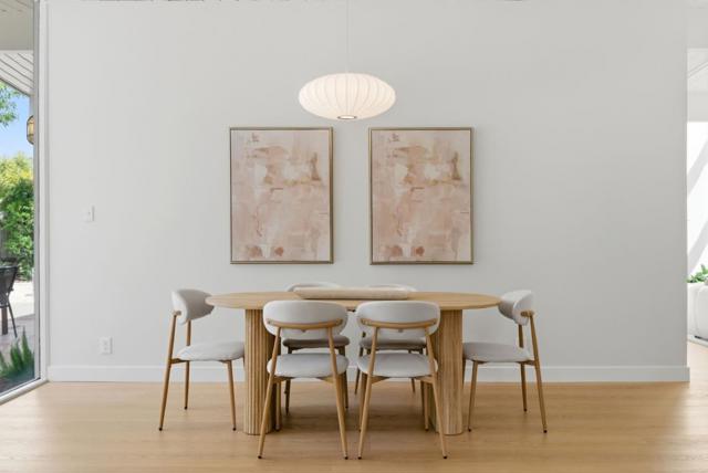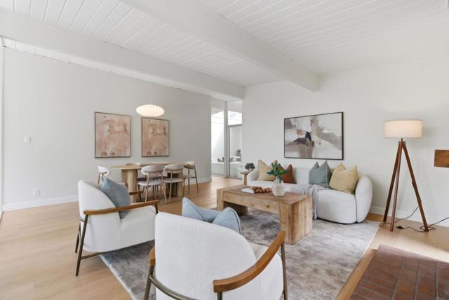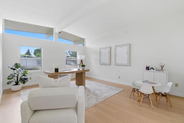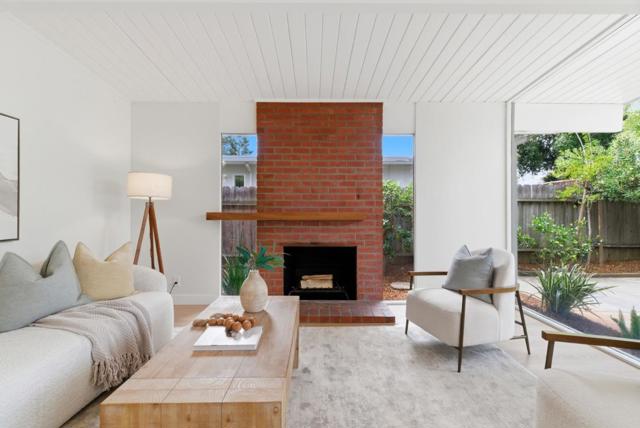 This spacious Fairbrae Eichler offers a unique floorplan with an addition in the front creating two primary suites on either side of the home, perfect for guests or in law quarters, as well as a spacious bonus room great for office or playroom. The enclosed atrium has new porcelain tile flooring, track lighting and skylights for abundant natural light. Youll find classic Eichler features throughout including mahogany paneling, globe lighting, open beam ceilings, post and beam construction, and iconic floor-to-ceiling panels of glass. The living and dining space has a brick wood burning fireplace with custom wood mantle and sliding door to yards. The updated kitchen features custom veneer core mahogany cabinetry, glass mosaic tile backsplash, granite countertops, stainless appliances with breakfast bar as well as eating area. New luxury vinyl plank flooring throughout with radiant heating. Landscaped yards with Spanish tile patio and trough planters. One car garage. Idyllic location, walk to Fairbrae Swim & Racquet Club and Fremont High School. Bike to Cumberland Elementary and Las Palmas Park. Minutes to abundance of El Camino Real amenities, Sprouts, Safeway, Trader Joes, as well as downtown Murphy Ave shops, restaurants, events, weekly Farmers Market and CalTrain station.