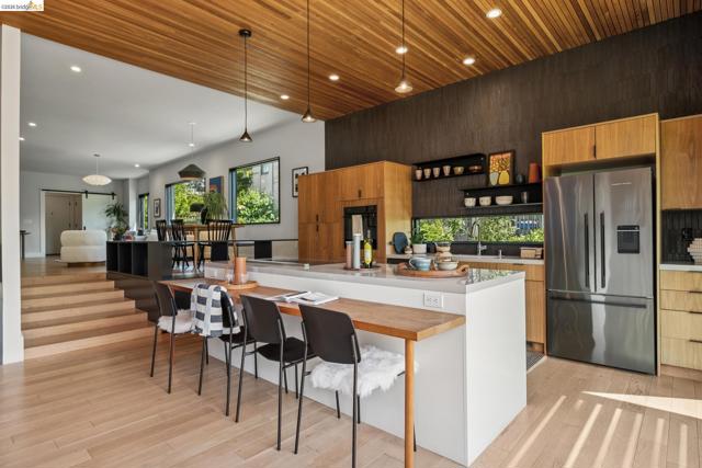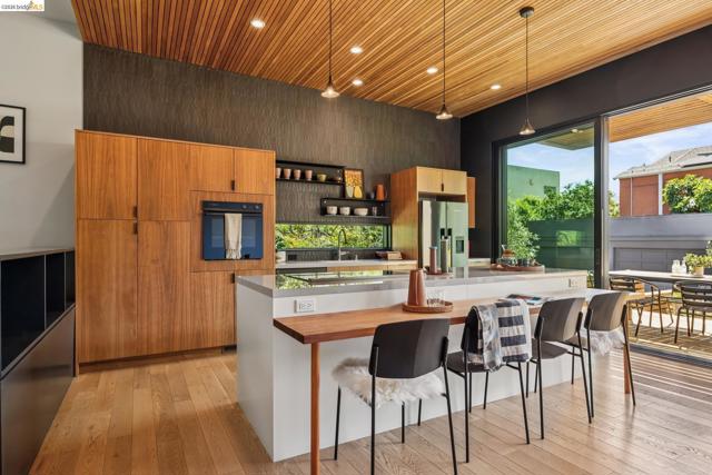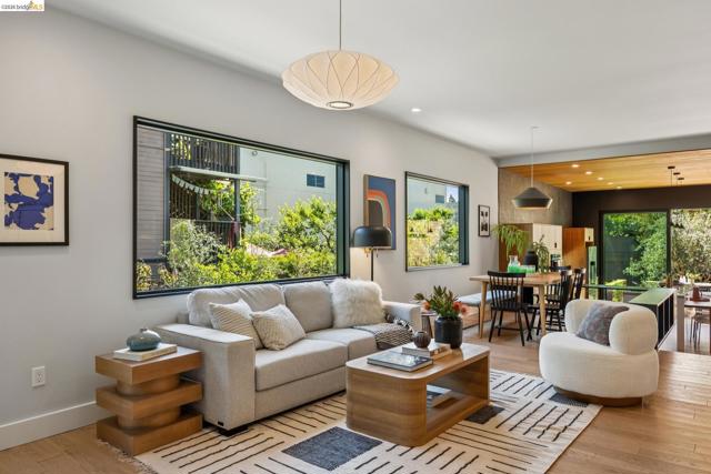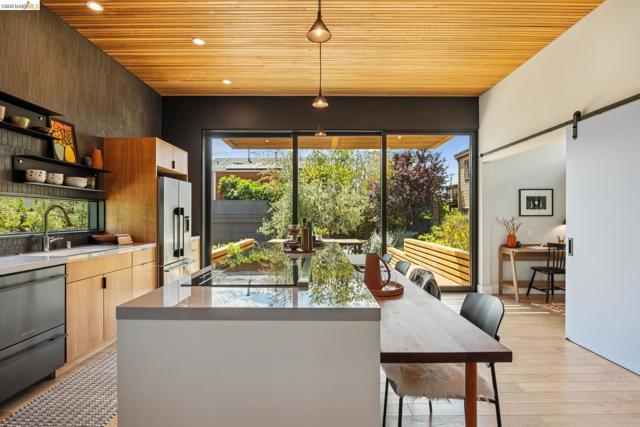 325 49th St. may appear to be a classic bungalow, however inside it’s been fully redesigned for modern living. Clean sight-lines draw your eye through to the lush yard, while details like the wood-paneled kitchen ceiling and a movable glass wall create a seamless connection between indoor & outdoor living. An open-concept living & dining area leads to a bright kitchen with sleek lines, bold tile, and warm wood accents. The large island is perfect for gathering and just off the kitchen are an office & dedicated laundry room. 3 bedrooms & 2 bathrooms complete the main level, including a primary suite. Both bathrooms feature European-inspired design with natural wood touches. Downstairs, flexible bonus spaces suit a family room, gym, office, or play area. Set on over 8,000sqft, the property features 15+ varieties of fruit trees, raised planting beds, and a private seating area. A spacious 500sqft garage with high ceilings provides excellent potential for a workshop or future ADU. Located less than 1/2 mile from the shops & restaurants of Temescal and Rockridge, and under a mile from Rockridge & MacArthur BART stations, 325 49th St offers both tranquility and convenience. Whether you’re grabbing a coffee nearby or heading into SF for the evening, everything you need is within reach.
