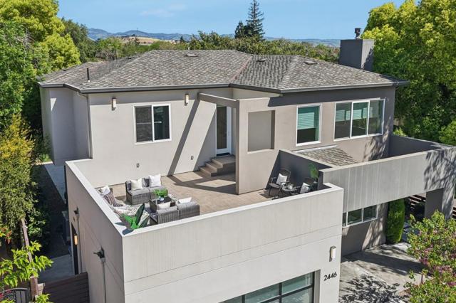 Welcome to this contemporary home built in 2020, on a picturesque tree-lined street in one of Willow Glens most coveted neighborhoods. Offering 4 beds + office & 3.5 baths on an expansive 8,238 sq ft corner lot. This home combines modern design w/ exceptional livability featuring one of the grandest entries in Silicon Valley, highlighted by dramatic cathedral ceilings that create an immediate sense of scale & elegance. High ceilings extend throughout, including rare 10 ft ceilings upstairs, enhancing the open & airy feel. The living areas are framed by a modern staircase & walls of windows that flood the space w/natural light. Thoughtfully designed w/ high-end finishes: wood flooring, custom wall textures,Hunter Douglas coverings,Toto fixtures,& custom organizers. The chefs kitchen is equipped w/ Sub-Zero & Miele appliances, waterfall island,& walk-in pantry. The family room opens to a low-maintenance yard through expansive doors, creating seamless indoor-outdoor living. Downstairs includes an en-suite bedroom & office. Primary suite offers a spa-like bath,& private balcony, while secondary bedrooms are spacious & filled w/ natural light. A rooftop terrace provides a peaceful retreat. Ideally located just minutes from downtown WG, parks, schools, dining, & major tech employers.