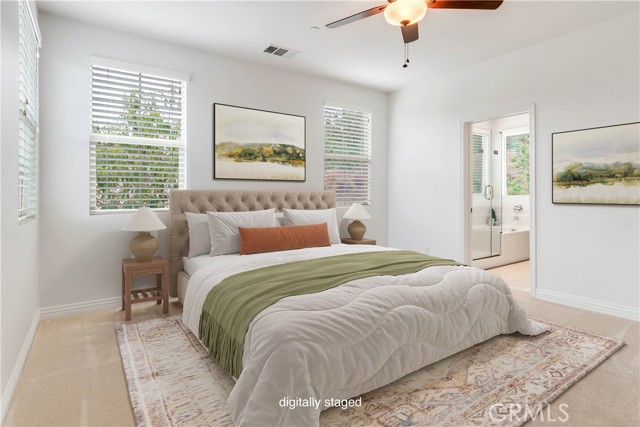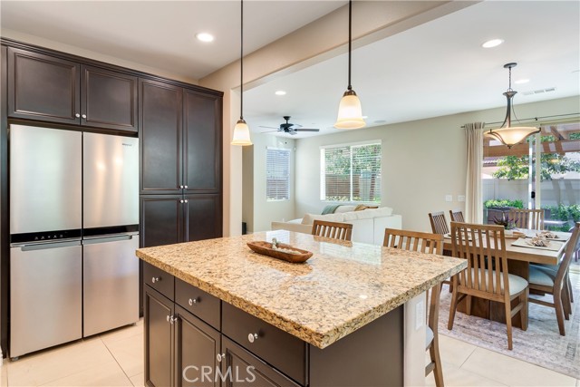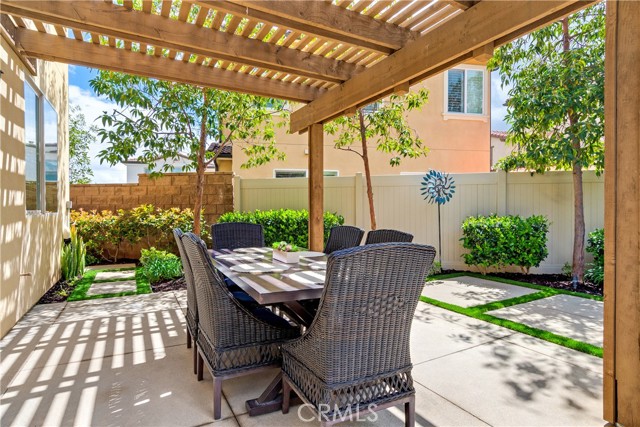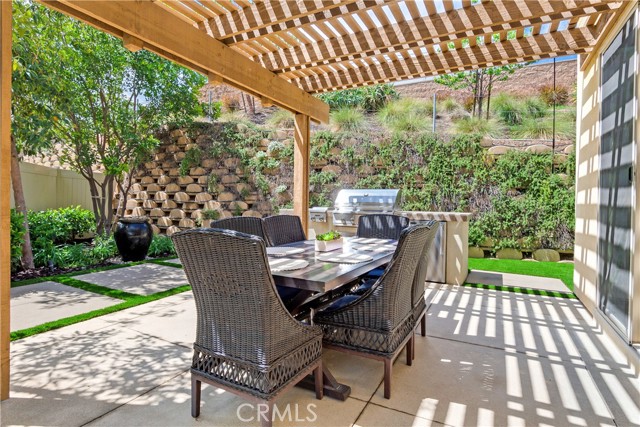 Welcome to 2999 Villa Catalonia, a beautifully maintained home located within the gated community of Terrassa in Corona. Ideally positioned within the neighborhood, this residence offers a sense of privacy with a desirable interior location, low HOA, and access to an impressive collection of community amenities. Designed for both everyday living and entertaining, the open-concept living and dining areas are filled with natural light and seamlessly connect to the backyard—creating an effortless indoor-outdoor flow. Thoughtful positioning of the home enhances privacy, allowing for a more peaceful setting both inside and out. Large windows and sliding doors frame the space, while tile flooring throughout the main level adds both style and durability. The home has been thoughtfully upgraded with builder enhancements including upgraded countertops, a stainless steel sink, an upgraded backsplash, built-in speakers, and an open stair rail in place of a traditional pony wall—giving the main living space a more modern, airy feel. A conveniently tucked-away half bath is located on the first floor. Upstairs, all bedrooms are privately situated and feature ceiling fans for added comfort. The spacious primary suite offers a walk-in closet and a versatile nook—ideal for a home office or reading retreat. The upstairs laundry room includes a newer washer and dryer along with a built-in sink for added functionality. The backyard is designed for true Southern California living, featuring new turf, a covered patio, and a built-in BBQ island complete with a side grill and outdoor refrigerator, along with a tranquil bubbling water feature—perfect for relaxing or hosting gatherings in a more private outdoor setting. Additional highlights include a 2-car garage with epoxy flooring and built-in storage, and no solar lease or obligation. Residents of Terrassa enjoy resort-style amenities including a pool, spa, fire pit, barbecue and outdoor cooking areas, picnic spaces, playground, and dog park—all within a secure gated setting.
