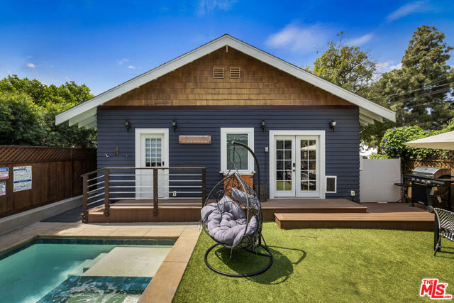 Set on a gentle knoll in the coveted enclave of Highland Park, this exquisitely restored 1906 Craftsman bungalow is a masterclass in timeless architecture reimagined for modern living. Enclosed by a classic Arroyo stone wall and enveloped in mature hedging, the property offers a rare sense of seclusion and serenity. Thoughtfully curated throughout, this residence features 3 bedrooms and 2 bathrooms, along with a flexible 4th room currently envisioned as a bespoke dressing room. Throughout the home, original architectural details - rich woodwork, gleaming hardwood floors, and meticulously restored windows - speak to its heritage, while refined updates introduce a quiet, contemporary sophistication. The formal living room, anchored by a decorative fireplace and flanked by custom built-ins, unfolds gracefully into an expansive dining room with original cabinetry, creating an elegant setting for both intimate gatherings and larger-scale entertaining. The chef's kitchen is both warm and highly functional, appointed with cork flooring, stainless steel appliances, and a dedicated laundry area, seamlessly integrating everyday convenience with considered design. Two spacious bathrooms offer a sense of sophistication and style, each appointed with dual vanities and curated finishes - one featuring a marble-clad shower and soaking tub, the other a beautifully executed standalone shower. Outdoors, the property reveals its most captivating feature: a private, resort-caliber retreat designed for effortless indoor-outdoor living. Lush, layered landscaping surrounds a saltwater pool and spa, complemented by multiple lounge and dining areas and a retractable awning for shaded afternoons. The setting is both tranquil and transportive, an ideal backdrop for entertaining or quiet relaxation beneath the Southern California sky. Additional amenities include central HVAC, a detached two-car garage (currently configured for one full-size vehicle), and driveway parking for two. Offered furnished or unfurnished and available immediately, this exceptional residence places you moments from Highland Park's most celebrated boutiques, cafs, and dining destinations, including Hippo, Highly Likely, Kitchen Mouse, Civil Coffee, Highland Park Bowl, and Triple Beam Pizza, with convenient access to the city beyond.