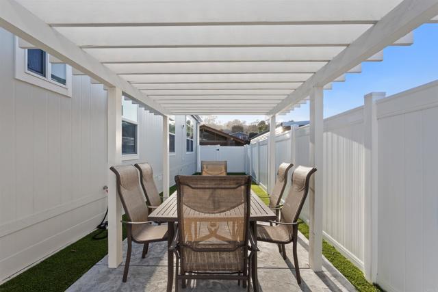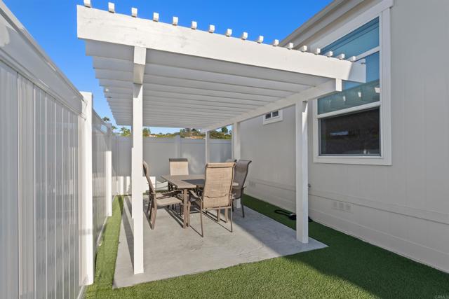 2025 New Construction 3 bedroom home in Park Encinitas, a sought after 55+ community where you own the land. Featuring Energy Star certification, an upgraded appliance package, beautiful finishes inside and out, new vinyl fencing, turf, and an outdoor dining area with a pergola. Located directly across from the clubhouse, salt water pool, and other amenities. Perfect for retirement, long-term rental, or even as a 2nd home. Walkable to shops, dining, groceries, and a vibrant calendar of community events. Great breezes and a large entry, private balcony, Enclosed Turf patio. Great 55+ community with pool, spa, Club House, Social Club activities, library, kitchen, billiard room picnic area, shuffleboard, and RV parking is available, Two Pets allowed. Convenient central location in Encinitas, a short distance to a medical complex, shopping, services, parks, and a great Senior Center. Freeways and beaches are within 3 miles. One Resident must be 55+ and others 45+ unless a Dr. prescribed live-in. Low $285 HOA that INCLUDES CABLE, INTERNET, AND WATER!!! Best Value in Encinitas! Don't let this get away.
