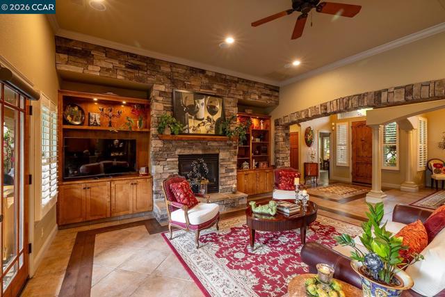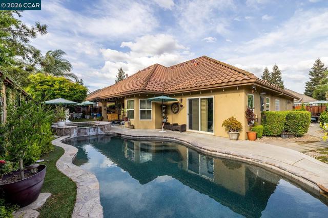 Welcome to 2531 Poppy Dr in Lodi—an elegant single-level home in the sought-after Sunwest Meadow neighborhood. Built in 2005, this 3 bed, 2.5 bath residence blends comfort and style with an open floor plan, spacious rooms, and soaring ceilings throughout. From the moment you enter, you’ll feel the warmth of this thoughtfully designed home. The expansive living room with vaulted ceilings and a stunning stone fireplace flows seamlessly into the chef’s kitchen, featuring granite countertops, stainless steel appliances, custom cabinetry, breakfast bar, and dining area. A formal dining room with vaulted ceilings adds to the inviting layout, while custom flooring beautifully ties together tile and hardwood. The spacious primary suite offers raised ceilings, crown molding, a large walk-in closet, and a luxurious bath with dual vanities, soaking tub, separate shower, and direct backyard access. Two additional bedrooms, 1.5 baths, and a convenient laundry room leading to the 3-car garage complete the interior. Step outside to your private backyard oasis—complete with a pool and spa with waterfall feature, multiple patio areas for lounging, artificial turf, and lush mature landscaping for added privacy. A rare opportunity you won’t want to miss!