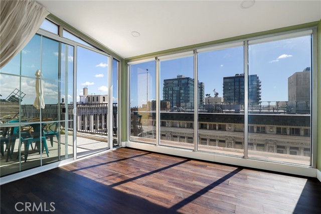 Iconic Penthouse Loft Living in the Historic Bartlett Building Perched high above the city in the renowned Bartlett Building, this penthouse residence captures the essence of Downtown Los Angeles living, where historic architecture meets modern design. This light-filled loft features soaring ceilings, oversized industrial windows, and exposed brick that create a warm yet striking interior. The open-concept layout offers flexibility for living, working, and entertaining, all framed by sweeping city views and abundant natural light. A thoughtfully converted flex space adds versatility, ideal for a home office, creative studio, or guest area. The kitchen was completely reimagined in 2021, blending clean, contemporary finishes with elevated functionality, while the living space continues to honor the building’s original character, rich textures, volume, and a true loft aesthetic. A rare highlight, the expansive private balcony extends the living space outdoors, offering room to unwind, entertain, or take in the skyline from above. Residents of the Bartlett enjoy a beautifully restored historic building with a rooftop deck featuring panoramic city views, along with the Mills Act for potential property tax savings (buyer to verify). Located in the heart of DTLA, just moments from Whole Foods, the Ace Hotel, Metro access, and some of the city’s best dining, coffee, and culture, this is urban living at its most vibrant and connected.
