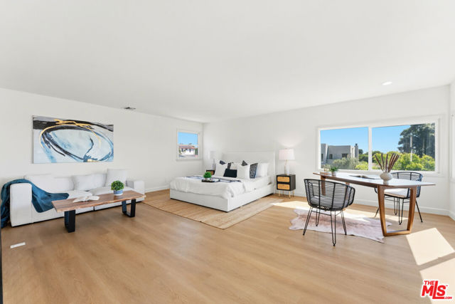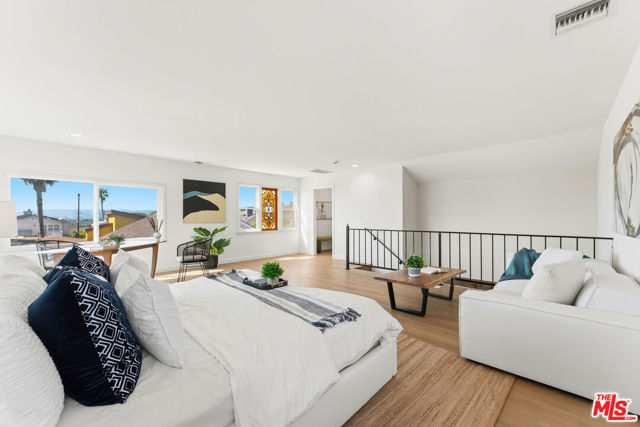 This is what you've been waiting for, stunning 4-bedroom, 3-bath mid-century home with a pool and sweeping views, situated on an expansive ~7,313 sq ft lot in the quiet, secluded Culver Crest area of Culver City, with access to award-winning Culver City schools and more. Designed for true indoor-outdoor living, the home features a spacious covered patio with a custom bar areaperfect for family gatherings, entertaining, and partiesoverlooking a resort-style pool and lush, tropical landscaping. The flexible floor plan includes three bedrooms on the main level, while the upper level offers a large open loft ideal as a fourth bedroom, office, or creative space, complete with scenic views stretching toward Santa Monica, the Pacific, the Palisades, and Marina del Rey. Recently repainted and upgraded with beautiful Oak LVP flooring throughout, the home also features a bright, open kitchen, vaulted ceilings in the living room, and a large downstairs bedroom with direct pool views. The upstairs bedroom includes a walk-in closet and a full bathroom on the second level, offering a private retreat with stunning views and flexibility. Additional bedrooms offer generous storage, including another walk-in closet in the rear-facing room. Additional highlights include in-unit laundry, newer central HVAC, and ample parking. Ideally located near parks, shopping, dining, and with easy freeway accessthis rare opportunity offers the best of Culver City living and is not to be missed!