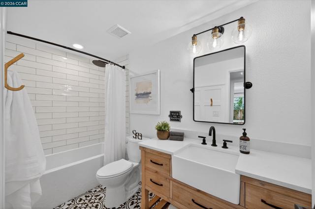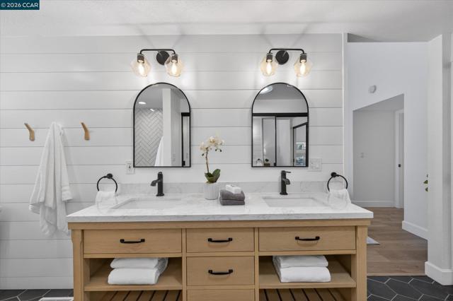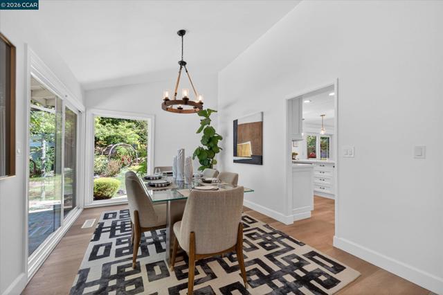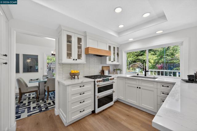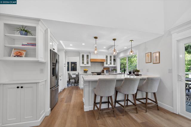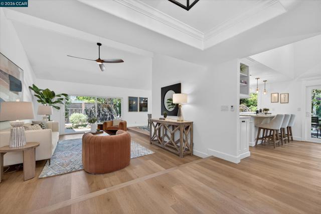 Nestled at the end of a quiet cul-de-sac on a rare flat, nearly ¼-acre private lot, this meticulously updated single story modern farmhouse delivers effortless California living with thoughtful luxury throughout. Step inside to discover an inviting open-concept layout featuring a spacious great room anchored by dramatic vaulted ceilings in both the family and living rooms. Adjacent is a separate formal dining room that overlooks the serene backyard, ideal for hosting memorable gatherings. The chef’s kitchen has been tastefully updated with crisp white cabinets, elegant quartz countertops, and flows seamlessly into the great room. A true highlight is the expansive primary suite, complete with its own vaulted ceilings and a luxurious spa-like retreat. The primary bath features a double vanity, a large walk-in shower with multiple shower heads, and high-end finishes that make every day feel like a resort escape. A secondary hall bath offers a spacious tub-shower combination for added convenience. No detail has been missed inside or out. High-end luxury wide-plank vinyl flooring runs throughout the home, while a dedicated outdoor office provides a peaceful workspace surrounded by nature—perfect for work-from-home professionals. Energy independence is built in with a brand-new (2025) owned 6.4 kW solar system and Tesla Powerwall 3. In normal weather, the home runs self-powered, shielding you from rolling blackouts and keeping utility costs low. A Tesla Wall Connector is conveniently mounted on the exterior side of the garage. The garage has been fully upgraded with insulation, durable epoxy flooring, custom cabinetry, and air conditioning—making it as functional and comfortable as the rest of the home. The expansive, private backyard has plenty of room to play and entertain. There's even a natural rock waterfall that runs through the back portion of the yard. Nearly a dozen mature fruit trees (Apple, Fig, Lemon, Pomegranate, and more). Enjoy the peace and privacy of this oversized, flat yard while being just blocks from highly rated Greenbrook Elementary and enjoying an excellent commuter location with easy access to highways, BART, and vibrant downtown Danville. A rare opportunity not to be missed.