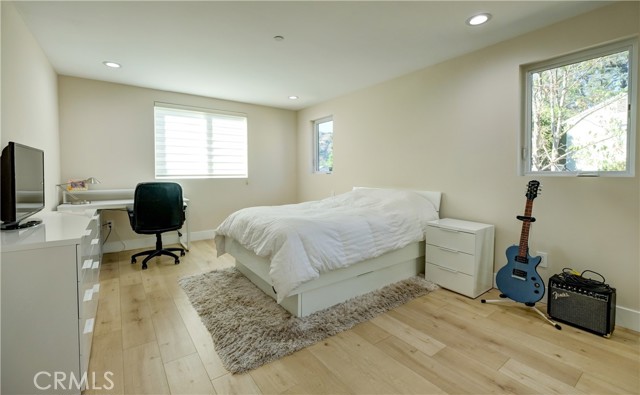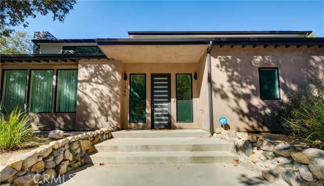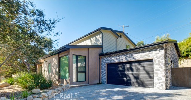 This architectural masterpiece, defined by sophisticated design and modern luxury, was featured in HAVEN magazine. Located in the prestigious Verdugo-Woodlands area of Glendale, this contemporary two-story single-family home offers serene mountain views and an elevated lifestyle. The residence features 4 bedrooms and 5 bathrooms across a total living area of 3,264 sq. ft. (per plans): 1,747 sq. ft. on the first floor and 1,517 sq. ft. on the second. Designed for luxury living, the home boasts an open floor plan, a spacious living room with a charming gas-burning fireplace, a wall of glass that floods the space with natural light, and 10-ft ceilings on the first floor. Wide-plank flooring flows throughout, and the formal dining room opens onto a large private patio—perfect for breakfast in the morning. The seamless integration of the kitchen, dining area, living room, and expansive outdoor patio makes this home ideal for hosting gatherings of any size. The open gourmet kitchen features modern stone countertops, a center island, and a breakfast area. One bedroom with an ensuite bathroom is conveniently located on the first floor, while the remaining bedrooms—including the exquisite master suite—are upstairs. The master suite offers a huge walk-in closet and an oversized bathroom with a tub, steam shower, and vanity cabinets. Additional highlights include energy-efficient features (tankless water heater, LED recessed lights), a large laundry room, access to an attached finished two-car garage with 220V outlets for EV charging, two A/C units for separate floor control, steel-reinforced wall framing, smooth Belle Glade cement plaster with olive-brown wood siding, standing-seam metal roofing in dark bronze, pre-painted metal gutters, limestone-decorated garage facades and fireplace, and interlocking pavers in front of the garage. The lush landscape, accented by graceful oak trees, enhances natural beauty and harmonizes with the surroundings. The property is on a tree-lined street, near Glorietta Park with tennis courts, a local convenience market, hiking/biking trails, shopping, fine dining, and city entertainment.