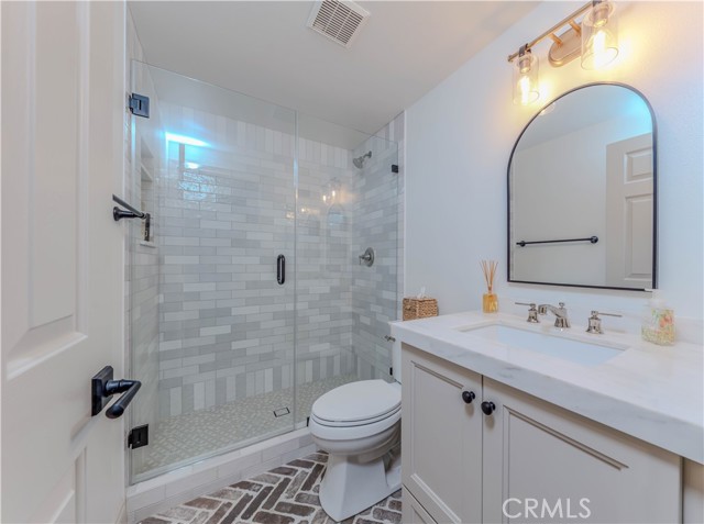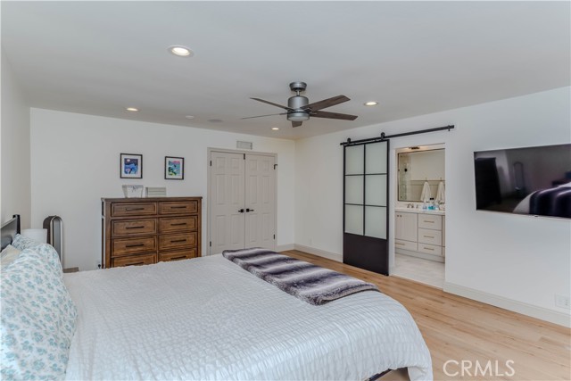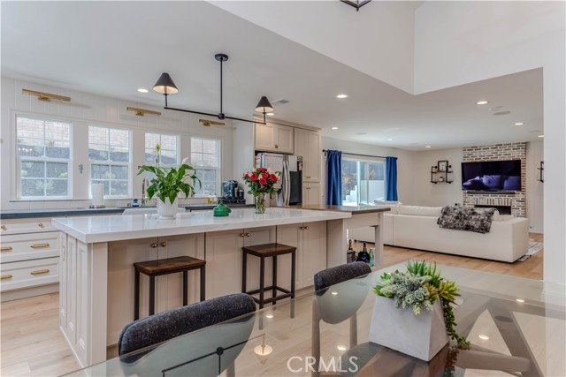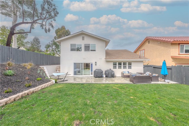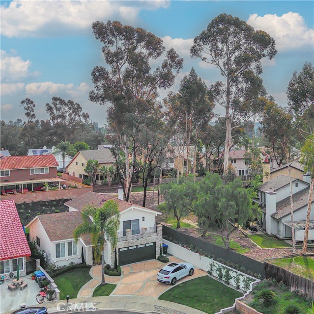 Nestled within a serene cul-de-sac on a desirable corner lot, this captivating home in the picturesque foothills of Mission Viejo offers a blend of modern elegance and comfortable living. With 4 spacious bedrooms and 3 beautifully appointed bathrooms, this residence boasts an impressive 2,290 square feet of thoughtfully designed living space. At the heart of the home lies the stunning entertainer's kitchen, a true chef’s delight. It features a generous island that invites friends and family to gather, along with an abundance of counter and cupboard space adorned with exquisite gold accent finishes that add a touch of sophistication. The kitchen effortlessly transitions into the warm and inviting family room, which is complete with a cozy fireplace, creating a perfect atmosphere for relaxation and family gatherings. Convenience is key with a thoughtfully designed downstairs bedroom and bathroom, ideal for guests or family members looking for privacy. The home is characterized by soaring ceilings that enhance the spacious feel and a step-up living room that adds a touch of architectural charm. Retreat to the tranquil primary bedroom, a spacious sanctuary that features stylish barn doors leading to an elegant ensuite bathroom. This luxurious space showcases modern fixtures, including a dual sink vanity and a large walk-in shower, providing a spa-like experience. The expansive walk-in closets, equipped with custom built-ins, offer ample storage to keep all your clothing and accessories organized. Step outside to the delightful walk-out patio accessible from the primary bedroom, a perfect spot to savor your morning coffee or unwind with an evening refreshment while enjoying the gentle breezes. Upstairs, two additional bedrooms provide more opportunities for accommodating family and guests, ensuring everyone feels at home. This exceptional residence is free from HOA restrictions and is perfectly located near premier shopping, lush parks, and highly-rated schools, along with effortless access to the I-5 corridor, making it a true gem in Mission Viejo.