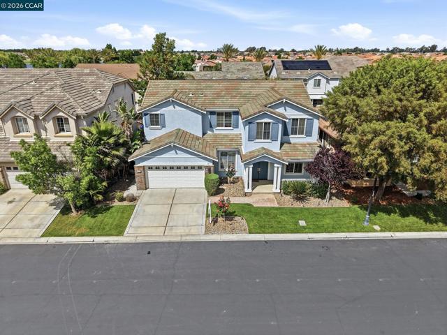 Enjoy 6809 New Melones Cir. in Discovery Bay, a spacious 4 bedroom, 3 bathroom home located in the premier gated community of The Lakes at Discovery Bay. Built in 2005 and offering over 3,700sqft of functional living space, this well-maintained home features an open floor plan, large rooms, and soaring vaulted ceilings throughout. Step through the inviting foyer past the bonus office and front living room into the expansive open-concept kitchen, dining, and family room—perfect for everyday living and entertaining. The chef’s kitchen is equipped with a large granite island, abundant cabinetry, built-in oven & microwave, gas cooktop with hood, large pantry and a breakfast bar. The spacious family room features a cozy gas fireplace, high ceilings, and seamless access to the backyard. The first-floor primary suite offers comfort and convenience, while a full guest bath and laundry room leading to the 3-car garage complete the main level. Upstairs includes 3 additional bedrooms, a full bath, a massive versatile loft ideal for gatherings or game nights, and an additional flex space perfect for an office or play area. Enjoy the low-maintenance backyard with mature palm trees and a large patio, ideal for BBQs and outdoor entertaining. Residents of The Lakes enjoy access to scenic walking trails, multiple lakes, greenbelts, parks, playgrounds, and picnic areas. Don’t miss this exceptional opportunity!