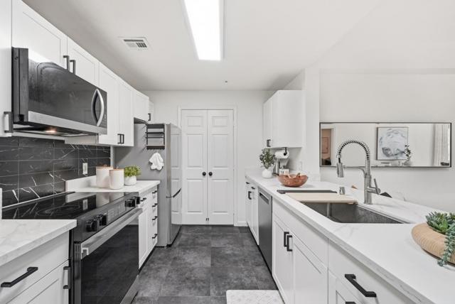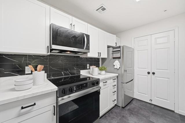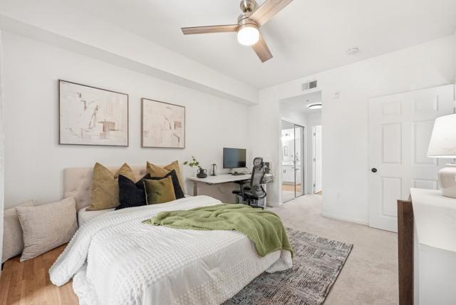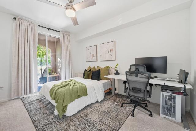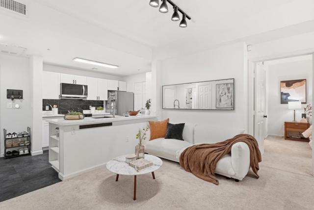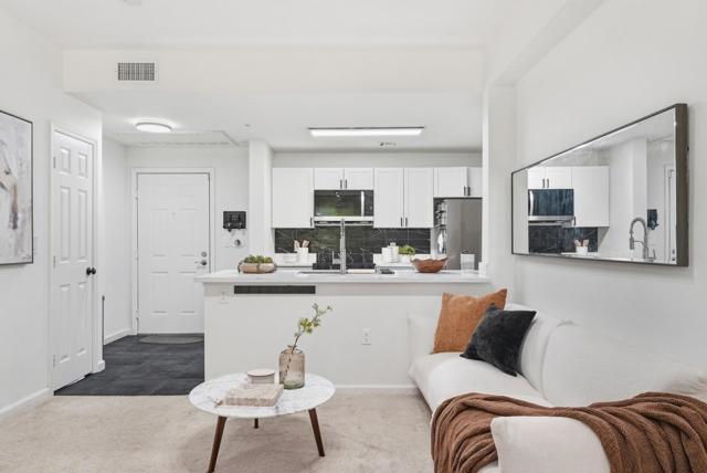 Newly remodeled ground-level condo featuring two private entrances, one from the street and another with direct access through the garage, offering exceptional convenience and privacy. The bright open floor plan showcases high ceilings and expansive windows that fill the home with abundant natural light. The upgraded kitchen boasts granite countertops, crisp white cabinetry, and brand-new stainless steel appliances, including Bosch dishwasher and Samsung stove, creating a stylish and highly functional space. The home is further enhanced with whole-house smart switches, adding modern comfort and control. Two spacious en-suite bedrooms provide comfort and flexibility, each featuring granite vanity tops and walk-in closets, while one suite also includes an additional stall shower. Additional highlights include in-unit laundry, Ring security system, and two reserved underground parking spaces. Ideally located within walking distance to nearby park and just minutes from Downtown San Jose, San Jose International Airport, major tech campuses, Caltrain, VTA, shopping, dining, and convenient access to Hwy 101, 87, and 880.
