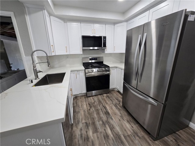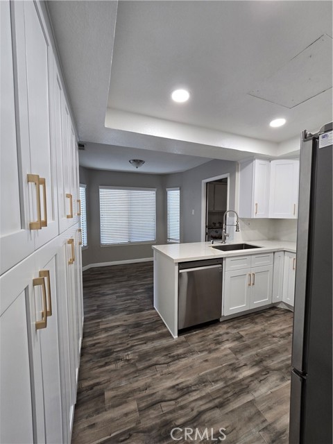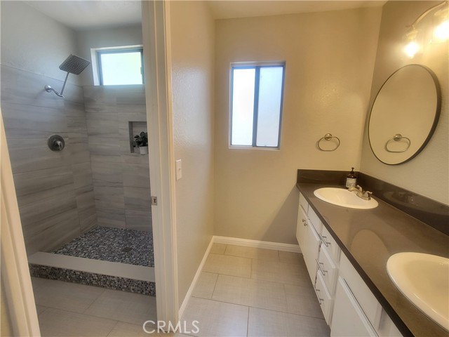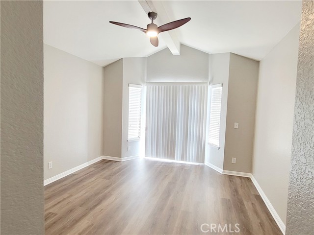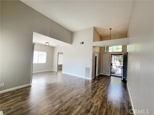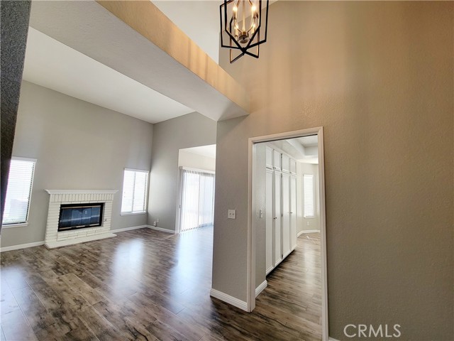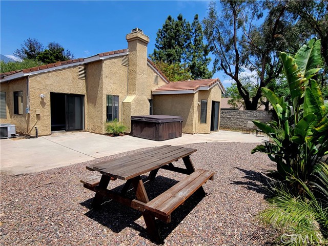 Welcome to this beautiful single-level home in the highly desirable East Highlands Ranch community. Freshly painted just two years ago, this charming residence offers two spacious bedrooms with newer luxury vinyl flooring and two full bathrooms. Step inside to an open and inviting floor plan featuring a large living room with a stunning fireplace and plenty of windows that fill the space with natural light. The kitchen, completely remodeled just six months ago, is truly a standout—featuring white shaker cabinets with two lazy Susan drawers, elegant quartz countertops with brown and gold veining, a stylish brick-pattern backsplash, and stainless steel appliances including a refrigerator, microwave, stove, and dishwasher and NEW A/C unit. The main living areas showcase beautiful laminate flooring, while both bathrooms are finished with tile. The guest bathroom includes a new bathtub with tiled walls and modern fixtures, while the primary bathroom offers a walk-in shower with new penny tile flooring. Additional upgrades include newer lighting throughout both the interior and exterior of the home. The freshly landscaped front yard enhances the home’s curb appeal, and the backyard creates a private, low-maintenance oasis complete with a large jetted Jacuzzi—perfect for relaxing and unwinding. Living in East Highlands Ranch means enjoying resort-style amenities, including clubhouses, a gated lake with picnic areas, scenic walking paths, a sand volleyball court, two swimming pools, basketball and tennis courts, playgrounds, and hiking trails. Ideally located just three minutes from the Stater Bros shopping center and only minutes from additional shopping, Costco, dining, and freeway access, this home offers the perfect blend of comfort, style, and convenience. This is truly a must-see!