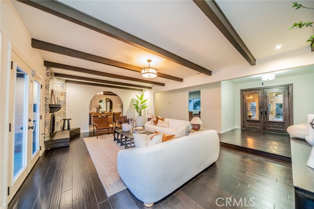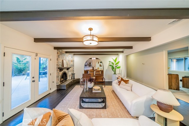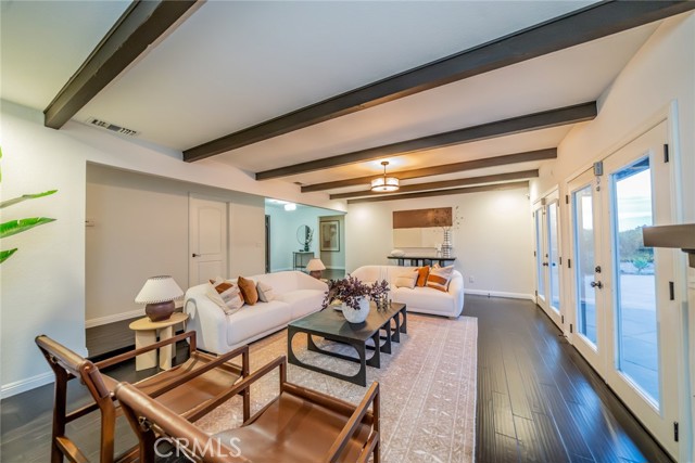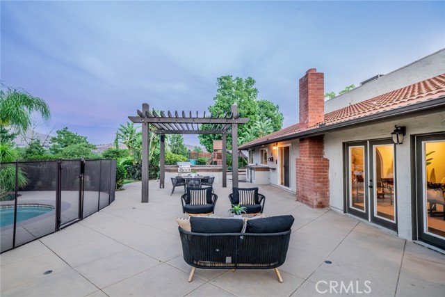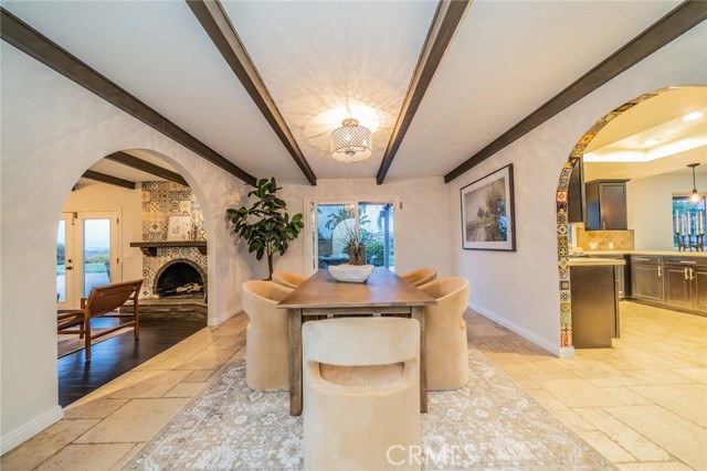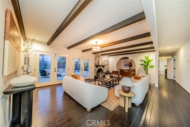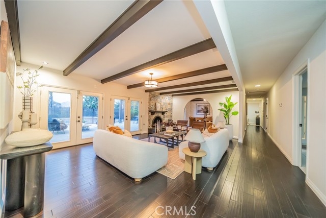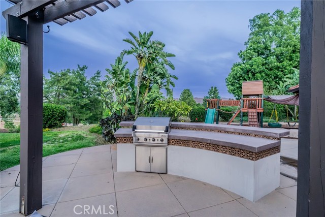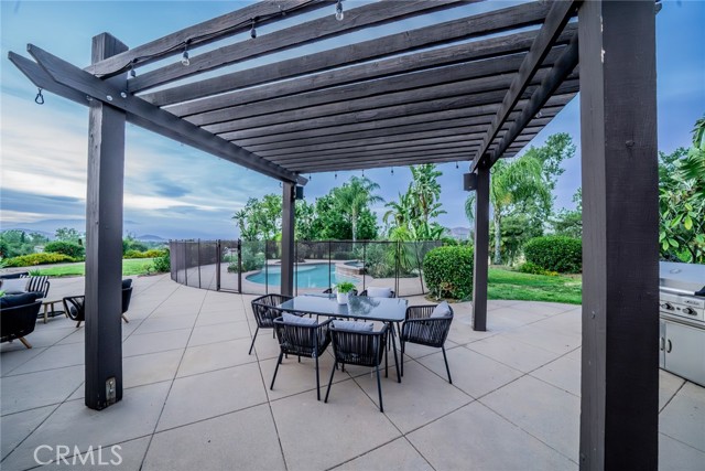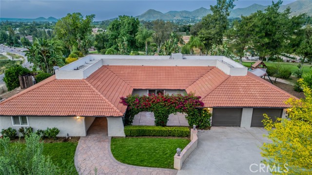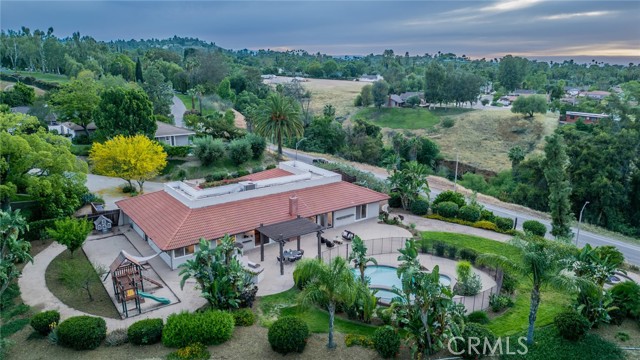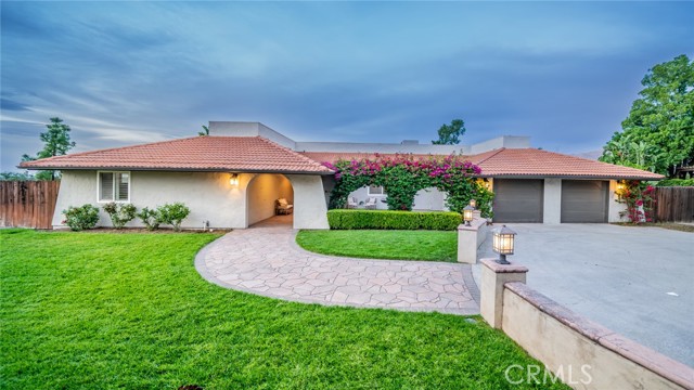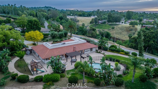 Nestled at the end of a peaceful cul-de-sac in a desirable Riverside neighborhood, this exquisite pool estate home offers a rare combination of privacy, elegance, and expansive outdoor living. Sits on an impressive 45,738 ft. lot, this beautifully appointed residence features 4 spacious bedrooms, 2.5 bathrooms, and a 3-car attached garage. From the moment you enter, the home reveals its distinctive character and warm ambiance. The main living areas are enhanced by stunning laminate and travertine flooring throughout the first level, creating a refined yet practical foundation for everyday living. The living room is a showpiece, highlighted by dramatic exposed beam ceilings and a striking Spanish-style fireplace, offering a timeless focal point and an atmosphere perfect for relaxing evenings or elegant gatherings. The open kitchen blends style with functionality, featuring beautiful shaker cabinetry, elegant quartz countertops, a stylish tile backsplash, and stainless-steel appliances. Each bedroom offers generous proportions and soft carpet flooring, creating comfortable retreats for rest and relaxation. The primary suite serves as a private sanctuary, complete with a well-appointed bathroom featuring dual vanities, quartz countertops, bronzed fixtures, and a spacious standing shower. The additional bathrooms showcase custom tile work with mosaic accents, modern vanities, and carefully selected finishes that elevate the home’s overall design. Step outside into your own private resort-style backyard, where an expansive finished concrete patio sets the stage for unforgettable outdoor living. Enjoy warm California days by the sparkling pool and spa, host evening gatherings around the custom fire pit, or relax beneath the gazebo while taking in the peaceful surroundings. Ideally located near a scenic golf course, this remarkable property delivers the perfect blend of tranquility, space, and upscale living — a true standout in the Riverside market.