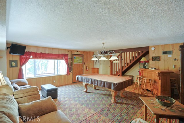 Welcome to your perfect mountain retreat in Big Bear! Nestled on a quiet cul-de-sac in the heart of Moonridge at 43535 Shasta Place, this inviting 3-bedroom, 2-bath home blends comfort, charm, and functionality—ideal as a full-time residence, weekend escape, or vacation rental. Step inside to a warm and welcoming living space, perfect for cozy nights by the fire or unwinding after a day of outdoor adventure. Large windows bring in natural light and frame the peaceful mountain setting, while the spacious layout offers plenty of room for family and guests. The kitchen flows seamlessly into the main living area, making it easy to gather, entertain, and create lasting memories. Downstairs, you’ll find a dedicated game room complete with a pool table—perfect for hosting friends or enjoying relaxed evenings in. Each bedroom provides comfort and privacy, making the home well-suited for both everyday living and guest accommodations. Step outside to your own private retreat and soak in the hot tub under the stars, surrounded by fresh alpine air and serene forest vibes. It’s the perfect way to end a day spent exploring everything Big Bear has to offer. Ideally located just minutes from Big Bear Lake, Snow Summit, Bear Mountain, Big Bear Alpine Zoo, The Village shopping and dining, and more. This home offers convenient access to hiking/biking trails, ski slopes, and year-round recreation while still feeling tucked away and peaceful. With its inviting cabin feel, entertainment-ready layout, and prime location, this mountain getaway is ready to be enjoyed in every season.