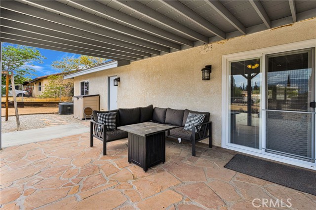 Welcome to this great home in Hesperia’s highly desirable Mesa area, where you get space, views, and a location that’s hard to beat. Just minutes from Hesperia Golf Course and Hesperia Lake, this is a neighborhood people love to call home. As you arrive, you’ll notice the attractive curb appeal with a half moon driveway, tile roof, RV parking, and a fully fenced lot that offers both privacy and functionality. There is also a covered front porch, perfect for enjoying your morning coffee or relaxing in the evening. Inside, you are welcomed by a spacious living room featuring a beautiful stacked stone fireplace that creates a warm and inviting atmosphere. The kitchen offers granite countertops, stainless steel appliances, and plenty of space for cooking and gathering. The home includes thoughtful upgrades such as newer windows installed approximately 2-3 years ago, along with shutters that were added about 1-2 years ago, giving the home a clean, updated look while improving energy efficiency. Additional features include ceiling fans in all bedrooms and an indoor laundry room complete with cabinets and a sink for added convenience. Step outside to a large covered patio with additional concrete for easy maintenance and flexible use. The backyard is perfect for entertaining or simply enjoying the open feel and mountain views that the High Desert is known for. The solar system helps keep energy costs down, adding long term value and efficiency. With a two car attached garage, RV parking, and a layout that offers both comfort and functionality, this home is a great opportunity in one of Hesperia’s most popular areas.