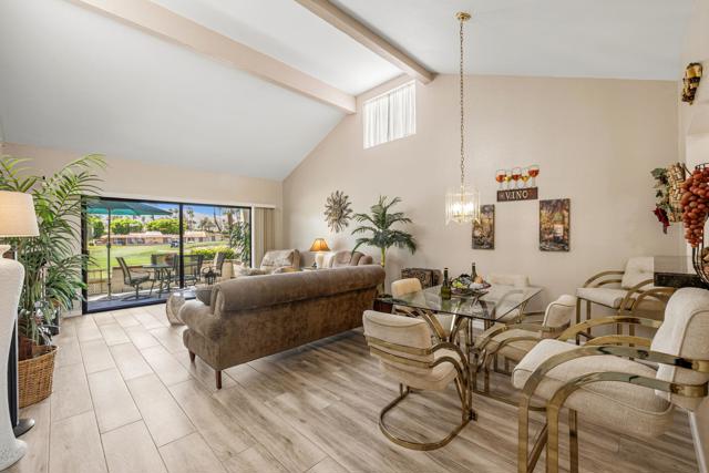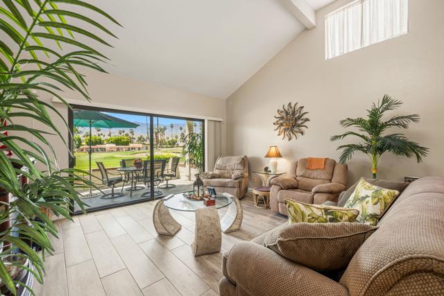 Wake up to stunning golf course and mountain views from this light-filled desert retreat in the highly sought-after, gated Cathedral Canyon Country Club.Soaring 13-foot vaulted ceilings create a bright, open-concept living space filled with natural light, seamlessly connecting the living, dining, and kitchen areas--perfect for both relaxing and entertaining. Sliding glass doors lead to a covered patio that lives like a second outdoor living room, ideal for enjoying morning coffee or evening sunsets overlooking the lush fairways.The home is offered furnished for a true turnkey experience, and includes a golf cart, making it easy to enjoy everything the community has to offer.Cathedral Canyon Country Club is known for its resort-style amenities, including an 18-hole golf course, tennis courts, multiple sparkling pools and spas, a clubhouse, and beautifully manicured grounds--all within a secure, gated setting.Whether you're looking for a full-time residence, seasonal escape, or investment opportunity, this property delivers the quintessential Palm Springs lifestyle.