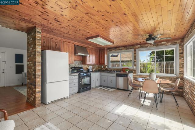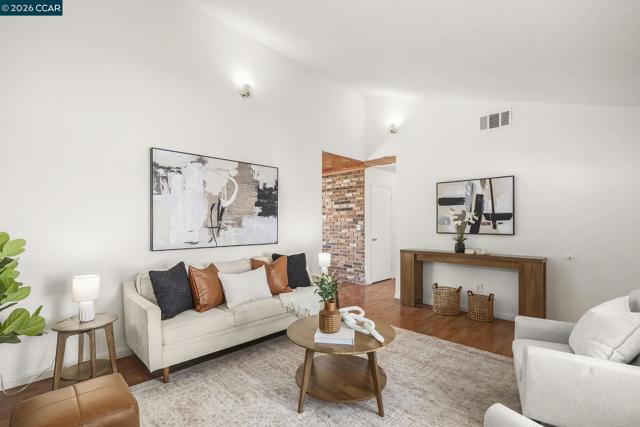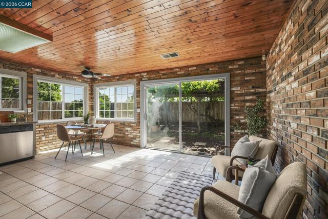 Charm and character come together in this sweet Bay Point home with easy access to BART and major highways—ideal for commuting to top Bay Area employers. This home offers fresh interior paint, updated bathroom vanities and fixtures, and wood-look flooring that create a clean, cohesive foundation. The spacious kitchen and family area showcase distinctive rustic design with brick accents and a wood ceiling, opening to the backyard through a large slider to a versatile outdoor space ready for your vision The property features established fruit trees, thriving grapevines, and a welcoming front courtyard with a shade tree and garden planter—perfect for relaxing or entertaining. Enjoy added privacy with no rear neighbors!. The primary suite includes a refreshed ensuite bath, and the living room fireplace adds warmth and comfort. Complete with a two-car garage, it offers space, character, and long-term potential in a convenient location. A smart opportunity for first-time buyers or investors