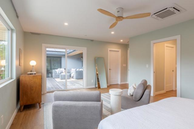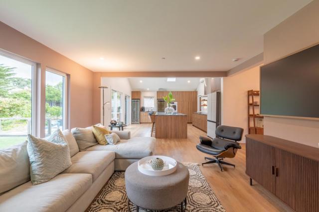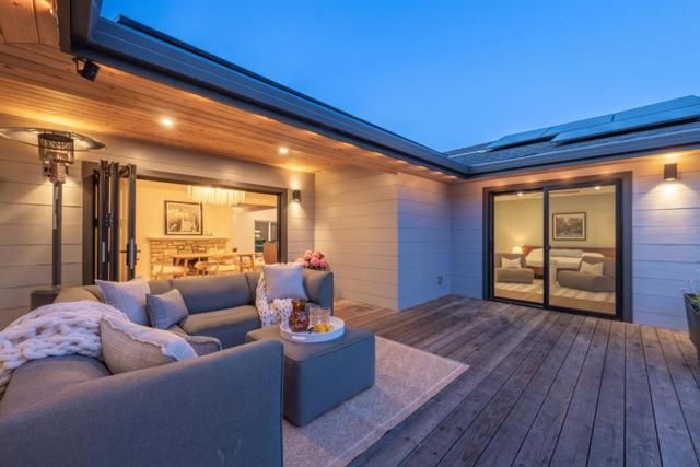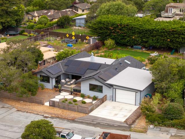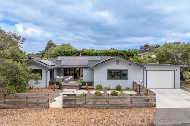 Carmel, an exceptional high end modern designer retreat fully reimagined inside and out set on a private, lush 1/3acre just minutes from beaches, shops, and dining. This rare single level 3BD/2.5BA home offers 2,142± square feet of refined coastal living with owned solar and resort style grounds. Striking yet inviting interiors blend contemporary architecture with warmth and livability, featuring custom cabinetry, soapstone countertops, quartz baths, a wood burning fireplace, and a chefs kitchen with premium appliances, Bosch induction cooktop, and double ovens designed for everyday comfort and entertaining. Comprehensively upgraded throughout with new electrical, plumbing, insulation, subfloor, drywall, and a 5zone minisplit HVAC system. Energy efficiency is enhanced by an owned 10.44 kW solar system (NEM 2.0) and Tesla EV charger. The grounds offer a true private sanctuary with lush landscaping, mature fruit trees, new decks and patios, and thoughtfully designed outdoor living spaces. A barrel sauna and hot tub create a spa like experience at home.