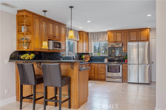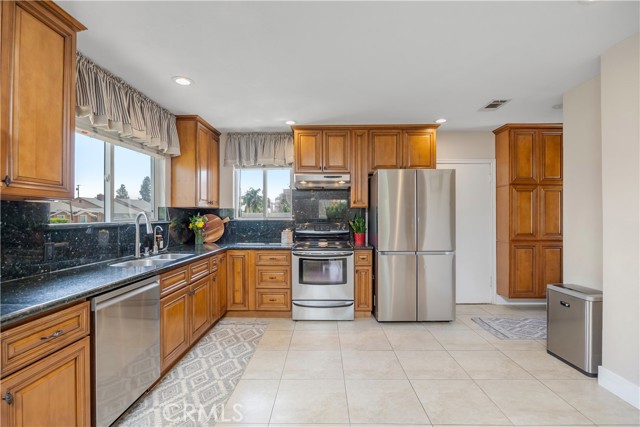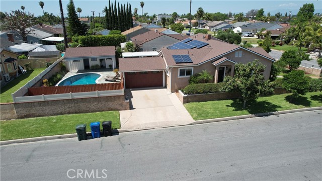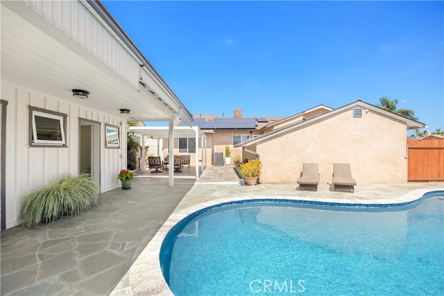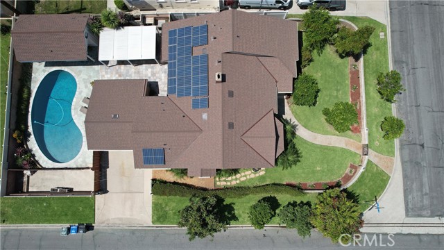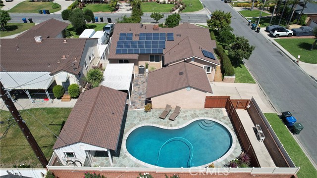 A North Downey private and secured residence, larger living at 2280 sq-ft. Featuring a complete open floor plan, no walls between the already large Living Rm-with a fireplace , Dining Rm with large bay windows, Family Rm with a 2nd door entrance, and a larger kitchen with granite counter tops, custom all wood cabinetes, stainless steel appliances and a standalone built-in wine bar. This home has bright natural light coming in from the upgraded dual-pan windows throughout and recess lighting for the evenings. Featuring 3 bedrooms, 2.5 bathrooms. The primary suite has a bathroom with tiled shower and a door to the backyard. Major system improvements provide peace of mind, including full copper plumbing, with upgrades extending to the section connecting to the water meter at the curb, a complete electrical rewire throughout the home, including walls and electrical panel upgraded to 240 volts. Additional upgrades include a tankless water heater, newer central A/C-Heater, a newer roof (approximately 1 year old), with upgraded rain gutters. Energy efficiency is a standout feature with a fully paid solar system, designed for long-term savings and sustainability. Be delighted by a true entertainer’s dream backyard featuring a custom-built barbecue area, an outdoor fireplace, multiple seating area, and a pergola to cover the hot sun when desired. A beautifully designed enclosed newer pool cabana, (possible ADU) offers a covered deck with lighting and ample interior space and a bathroom. Enjoy the resort style flooring, a premium slate tile hardscaping, including higher-end unfading green slate surrounding the pool area. The pool has upgrades include replacing the underlying concrete, finishing with a pebble surface, along with replacing the pool piping, filter, motor, and a modern filtration system that can be controlled from your phone. The gounds are 7736sq-ft flat lot include a large grass area, rose planters lining the perimeter, creating a private and welcoming setting. Mature fruit trees enhance the landscape, including avocado, pomegranate, orange, lemon, tangerine, mango, apple, and loquat. Additional features include a WiFi-enabled sprinkler system, a full security camera system with recorder (no subscription required) This exceptional property combines modern upgrades, and resort-style outdoor living. A very close walk Elementary or Middle schools. Downey HIgh School & Stonewood Mall is very close. Fwy close to 605, 5, 105, 710 A perfect location