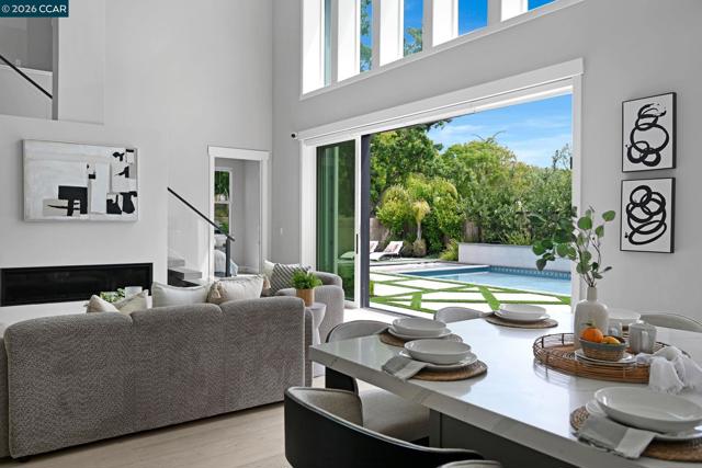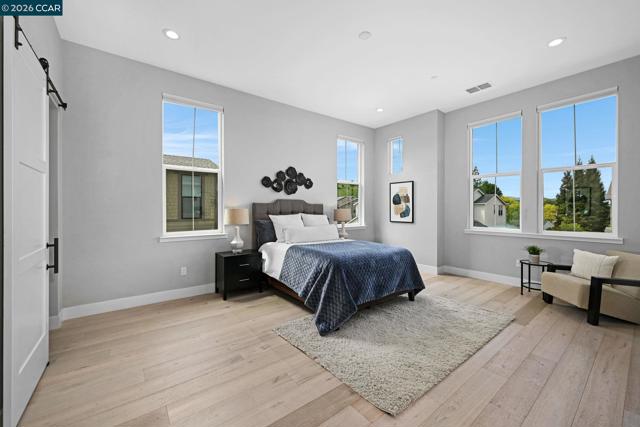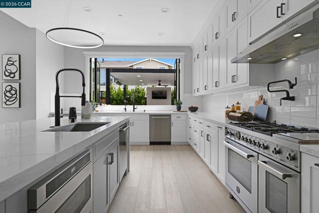 A rare opportunity to own in desirable Edendale! Built in 2021, this private enclave of 18 executive homes was designed to offer the ultimate luxury living experience. Highly upgraded throughout, this is the epitome of functional luxury. Open concept, indoor/outdoor living, volume ceilings, oversized windows, a large fully opening wall door & pass-through windows in the kitchen provide ample natural light, convenience & style. The gourmet chef’s kitchen features highly engineered cooking appliances by Bertazzoni, including a gas 6-burner/griddle range oven, double dishwashers (Kosher option), oversized built-in fridge, beverage fridge & microwave. Spacious eat-in double island, quartz countertops, custom backsplash, double sinks, pot-filler, Precision cabinets, water filter & spacious walk-in pantry. Stunning Lugano hardwood floors, wireless blinds, recessed lighting, closet systems, ceiling fans, custom bathroom tile, surround sound wiring & barn doors throughout. The stunning Viewrail Flight floating stairs provide elegance & are the centerpiece of the home. Ideal floorplan includes a first-floor ensuite, separate powder room & an oversized, attached bedroom suite that can be easily converted into an ADU with exterior entry, complete w/ its own ductless split-unit system. The primary suite features a spacious, fully tiled rain spa shower, standalone tub, dual vanities & double walk-in closets. Enjoy entertaining in the spacious, low-maintenance backyard. Stunning waterfall pool, turf sideyard for play & a high-end outdoor pavilion with recessed lights, ceiling fan, TV hook up, gas fireplace, built-in Bullet BBQ, beverage fridge & heaters. The split garage is upgraded with built-in shelving, farm sink, epoxy floors & double electric plug-ins. Luxury upgrades also include hardwiring for int/ext sound system, an int/ext camera system, alarm system & double tankless water heaters. Steps away from Sycamore Valley Park & Elementary, and in close proximity to Blackhawk Plaza & quaint downtown Danville. Top-rated schools and convenient commute options. Open Sat 4/18 and Sun 4/19 from 1-4pm.