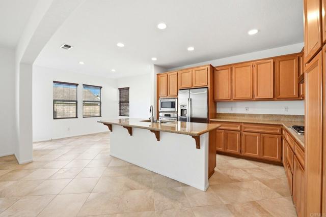 Tucked away on a quiet cul-de-sac, 571 Trovita Court is a recently refreshed home that offers a great combination of comfort, space, and functionality. With a light-filled open-concept layout and clean, timeless finishes, the home is move-in ready and easy to enjoy from day one. The main living area features expansive tile flooring, a cozy fireplace, and plenty of natural light. An arched opening connects the living space to the kitchen, creating a natural flow that works well for both everyday living and entertaining. The kitchen includes a generous breakfast bar, stainless steel appliances, ample cabinetry, and recessed lighting, making it both practical and inviting. The home offers a flexible and well-thought-out bedroom layout with a total of five bedrooms. The primary suite is located on the main level, providing privacy and convenience, and features wood flooring, a spacious bathroom with a separate tub and shower, and a walk-in closet. Also downstairs are two additional bedrooms, including one at the front of the home that works especially well as a home office. Upstairs, you’ll find two more bedrooms that are nicely separated from the main living areas, offering great space for guests, family, or additional work-from-home needs. Bathrooms throughout the home are clean and neutral, giving a fresh look with room to personalize over time. Additional highlights include owned solar (6.4kW), a Tesla charger in the garage, and a recently refreshed interior. The backyard offers a small grassy area along with a blooming planter bed, providing a simple and pleasant outdoor space. With its functional layout, recent updates, and quiet location, this home is a great opportunity in a desirable Escondido neighborhood.