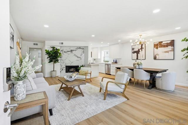 VA approved! Welcome to this gorgeous, remodeled, move-in-ready 3-bedroom, 2-bath single-level condo located in the highly sought-after Baycrest community of coastal Point Loma! With TWO private PATIOS enjoy time for relaxing, entertaining, or storing your coastal lifestyle essentials. Thoughtfully renovated with extensive recent improvements, the home offers a fresh, modern aesthetic with beautiful quartz countertops, updated cabinetry, stylishly remodeled bathrooms, new laminate flooring, and nearly all new dual-pane windows that fill the space with abundant natural light. A rare and valuable bonus is the PRIVATE in-unit washer and dryer, while spacious bedrooms and generous storage provide both comfort and functionality. Tucked within a quiet cul-de-sac setting, Baycrest offers a peaceful, low-traffic atmosphere along with access to two community pools. Conveniently located near shopping, coffee shops, grocery stores, major freeways, the airport, and the waterfront, this home delivers the ideal blend of comfort, convenience, and true San Diego coastal living — a rare opportunity in one of Point Loma’s most private and desirable communities.