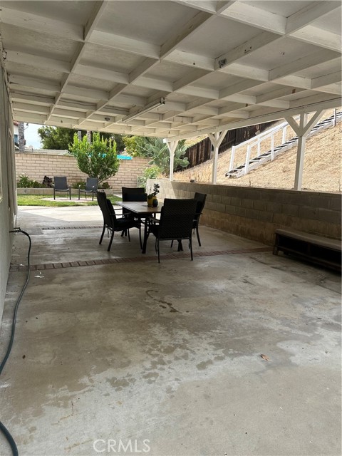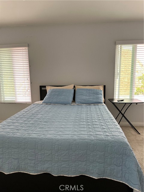 This is a 5 Bedrooms 3 Baths house at the North of the Freeway in the Box Springs Area of Moreno Valley. There are two bedrooms downstairs and three bedrooms upstairs for your convenience. Laundry room with washer and dryer in the garage. This house is close to the UCR and Moreno Valley Mall. The house is furnished with Queen beds, working desks and chairs in each room. TV in each room. Full equipped kitchen with stove, refrigerator, microwave. pots, pans and utensils. Large back yard with table, chairs and BBQ grill. Dining table for up to 10 guests. Living room with 3 reclinable sofas. 3 car garage. This house is clean and well maintained, it's perfect for big families. This is a house that has everything you may need for you and your family just to move in. Call for a private showing.