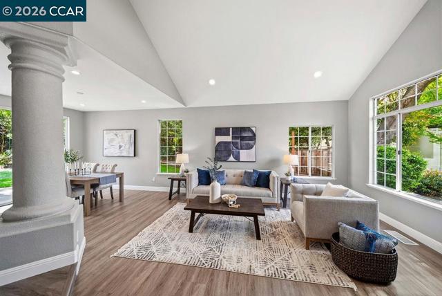 Amazing views and a back yard with tons of entertaining space! Garden beds, hardscape patio and a guest retreat with bed, bath and sauna (approx 300 sq ft) to practice yoga, use as an office or just have company. Inside find an updated kitchen right off the dining room and both living room and family rooms for gathering. Upstairs has a primary retreat and bath along with spacious bedrooms. Come show this beautiful home up in the hills of Clayton and discover all this town has to offer you!