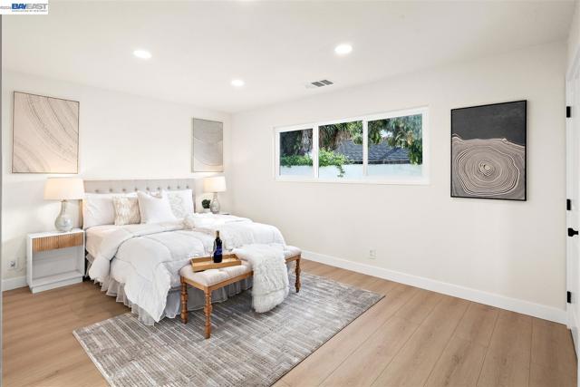 Opportunity to own a fully updated Northeast-facing Newark home with permitted renovations — this is the closest you get to be to the desirable Lake Community without paying the Lake premium! This beautifully renovated home showcases modern upgrades throughout with no expense spared. Updates include new kitchen cabinetry with a spacious island, new appliances, fully updated bathrooms, new flooring, fresh interior and exterior paint, modern light fixtures and an electric fireplace that adds warmth and style. Central heating and air conditioning ensure year-round comfort, featuring a newly installed A/C unit. All renovations were completed with permits, offering peace of mind for the new owners. The home features four bedrooms, providing flexibility for families, guests or a home office. The thoughtfully designed layout creates comfortable spaces for everyday living and entertaining. Step outside to enjoy beautifully upgraded front and backyard spaces featuring pavers, turf and an irrigation system, creating a low-maintenance yet inviting setting perfect for relaxing, hosting or enjoying outdoor time. Ideally located near Musick Park, Newark Community Center Park and Lakeshore Park, with easy access to I-880 and Highway 84 (Dumbarton Bridge) for commuting. Close to everyday conveniences including Safeway, Sprouts Farmers Market and local dining. This Newark home combines modern updates, outdoor living and a prime location in one complete package. Come check it out!