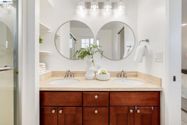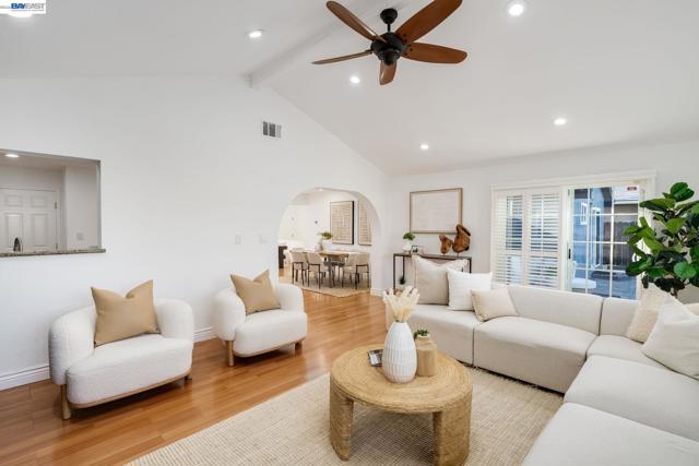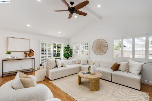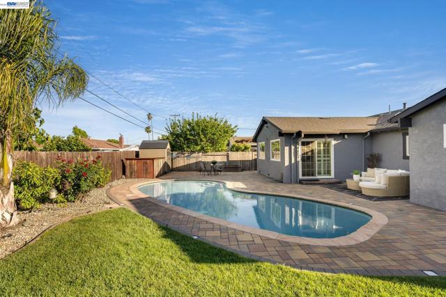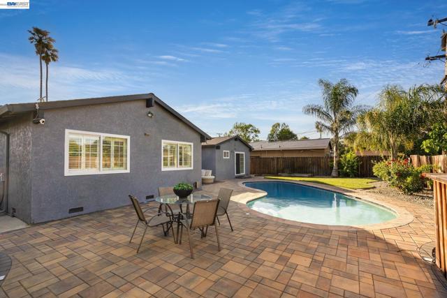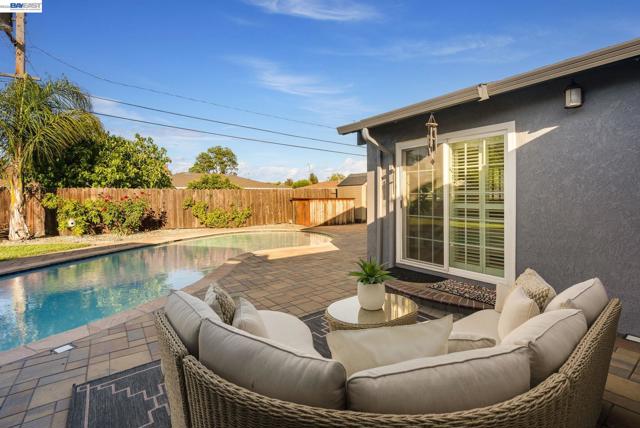 Everything's been done — just move in. This ~1,850 sq ft showstopper has been thoughtfully transformed from top to bottom, with Tesla solar, updated roof, and fresh interior & exterior paint delivering standout curb appeal and long-term efficiency from day one. Inside, the double living room layout is the heart of the home — a sophisticated sitting area with stone fireplace opens through an arched passage into a vaulted family room with plantation shutters and a dramatic built-in entertainment center. The open kitchen ties it all together with granite counters, stainless appliances, a 3-seat breakfast bar, and solar tubes that keep the space bright all day. The primary suite offers a massive walk-in closet, and the remodeled bathrooms impress with quartz counters and clean subway tile finishes. Out back, the private oasis delivers: custom high-end pavers, a sparkling updated pool, mature palms, and a large play area — built for weekend entertaining and everyday living alike. Walkable to top-rated schools at every level, parks, shopping, and the Iron Horse Trail. Easy access to I-580/I-680, Dublin BART, and tech bus pick-up locations — commuting has never been simpler.