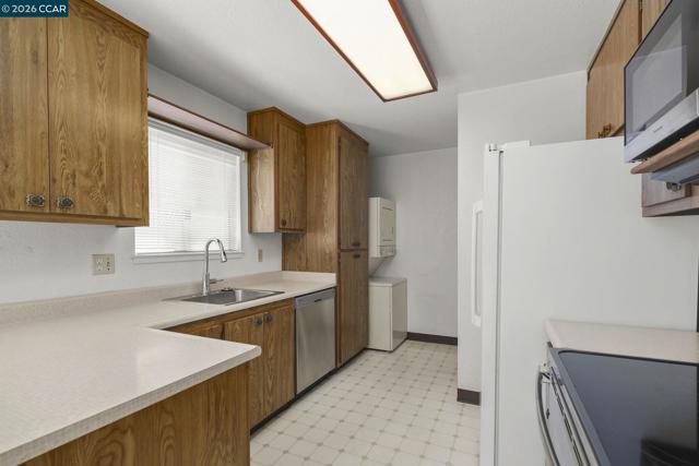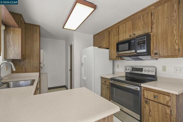 Welcome home to this 2 story Townhouse Style Condo. Gated access to this well located 2 bedroom, 1.5 bath unit with its own dedicated parking space directly in front of unit. A detached, finished 1 car garage too. Large, Private patio with deck is ideal for entertaining and barbecues. The functional kitchen features ample cabinet and counter space, newer 5 burner electric range and a double door refrigerator. Adjacent to the kitchen is an inside laundry area with a washer/dryer. The main bath located between 2 spacious bedrooms has been updated with a solid surface surround. There is an updated furnace. The under market list price reflects the need for cosmetic updates.