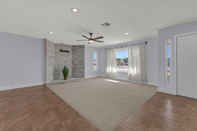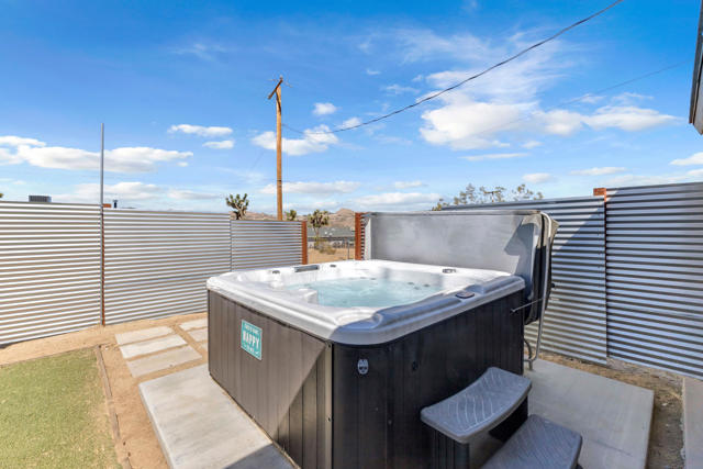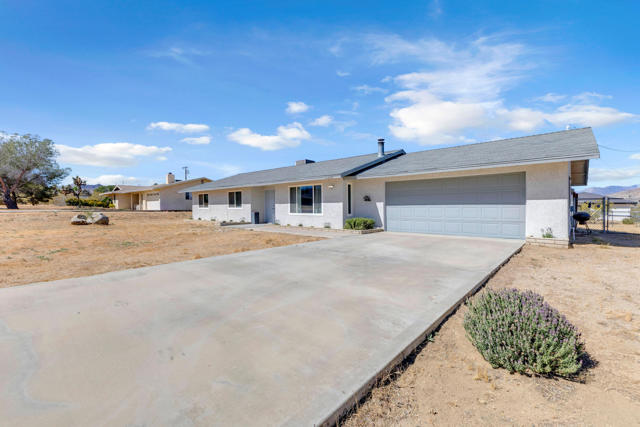 Welcome to this beautiful home in the picturesque High Desert town of Yucca Valley. Situated on a spacious lot, the property features stunning mountain views, a two-car garage, ample front parking, and a convenient circular driveway. Inside, you'll find a bright and spacious living room with brand-new carpet and fresh paint throughout the home. There is also an option for a wood-burning fireplace setup. The kitchen is generously sized and updated with freshly painted cabinets, new cabinet doors, and brand-new drawers.This home offers 3 bedrooms and 2 bathrooms, providing comfortable living space. The backyard includes luxurious jacuzzi with its own fenced area, along with partial fencing across the property for added flexibility. Conveniently located just minutes from shopping and dining, including Walmart Supercenter and The Home Depot, and a short drive to Joshua Tree National Park, this home offers both convenience and scenic desert living.