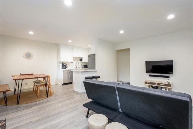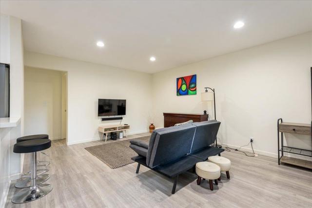 Welcome to your private retreat in the heart of downtown Campbell, just steps from the vibrant shops, restaurants and entertainment at The Pruneyard! This tastefully updated 1-bed, 1-bath condo offers a blend of comfort, convenience, and lifestyle. Ideally situated on the ground-level, the home enjoys a central location within the community, offering direct access to the pool and spa - perfect for unwinding right outside your door. Inside, you'll find a modern, open-concept layout with living and dining areas flowing seamlessly together. The updated kitchen features quartz countertops, a convenient breakfast bar, and refinished cabinetry, while refreshed laminate flooring adds warmth and style. The generously-sized bedroom includes a walk-in closet, and the split-bathroom design provides ample storage and functionality. Additional community amenities include covered parking, a well-maintained laundry facility, and HOA dues that cover water and garbage. Whether you're a first-time buyer, looking to downsize, or searching for an investment, this is an opportunity you won't want to miss.