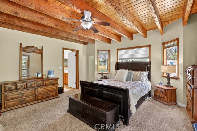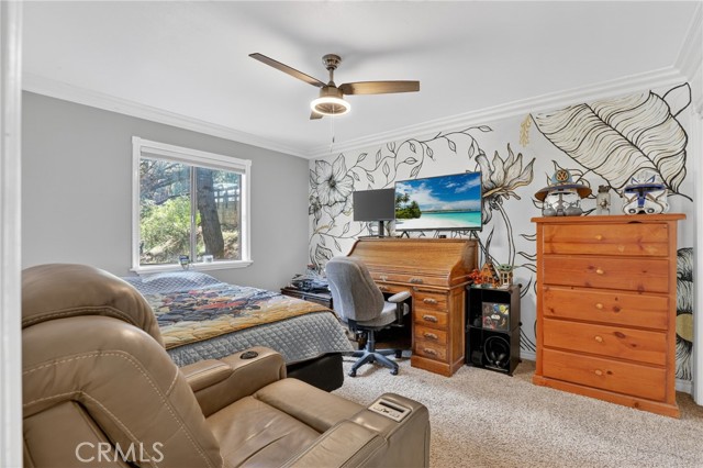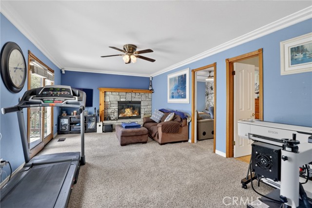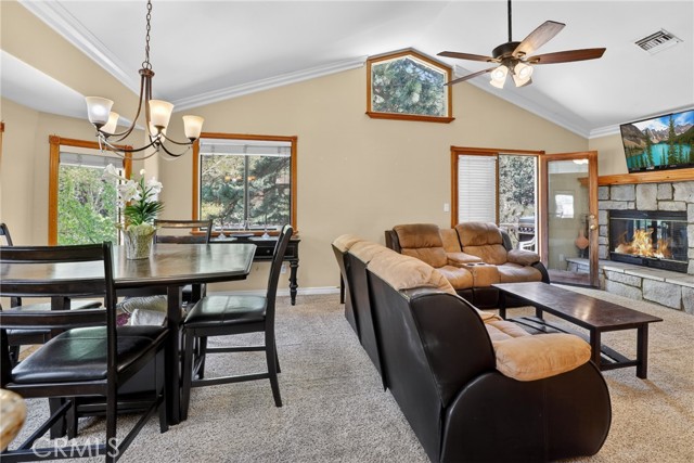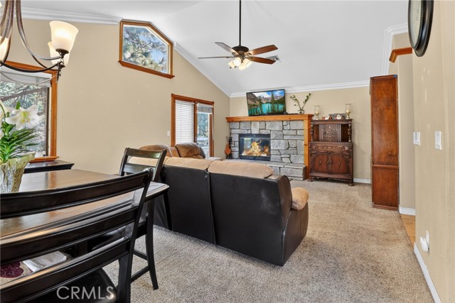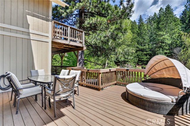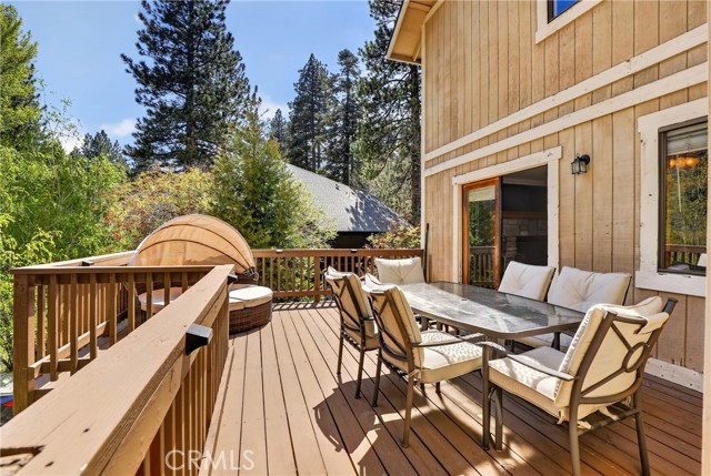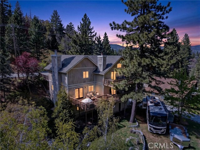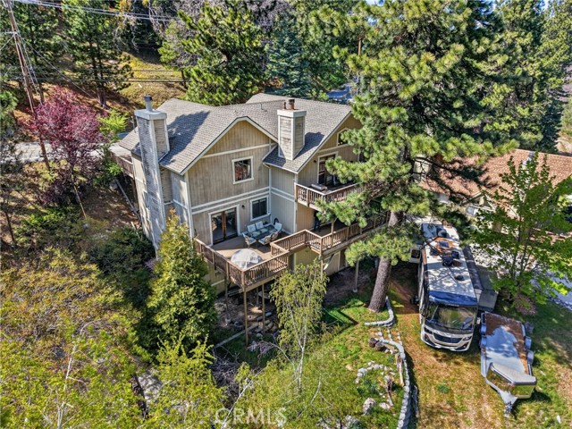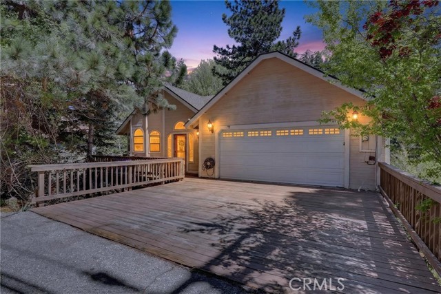 Welcome to 315 Fairway Drive, ideally located near the Lake Arrowhead Country Club. This inviting mountain retreat offers level entry to both the main living area and the two-car garage—an uncommon and highly desirable feature in the area. The main level features an open-concept layout with a well-appointed kitchen, dining area, and a warm, welcoming living room anchored by a cozy fireplace. Step outside onto a private deck just off the living room—perfect for morning coffee or evening relaxation. Downstairs, you’ll find the spacious primary suite complete with dual vanities, a soaking tub, and separate shower. A comfortable family room with its own fireplace sits adjacent to two guest bedrooms that share a full bath, creating an ideal layout for family or visitors. An additional deck on this level provides even more space for entertaining or unwinding in the fresh mountain air. The property also offers exceptional parking options, including backyard access via an access road, currently accommodating an RV, additional vehicle, and trailer. Combined with ample on-site parking, this home is well-suited for hosting or multi-vehicle households. Conveniently located just a short drive from Blue Jay Village and Lake Arrowhead Village, you’ll enjoy easy access to dining, shopping, and year-round mountain activities.