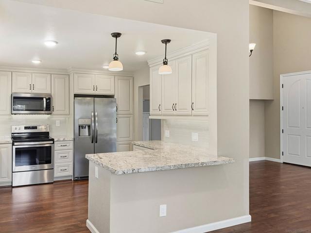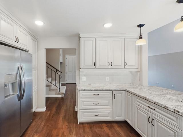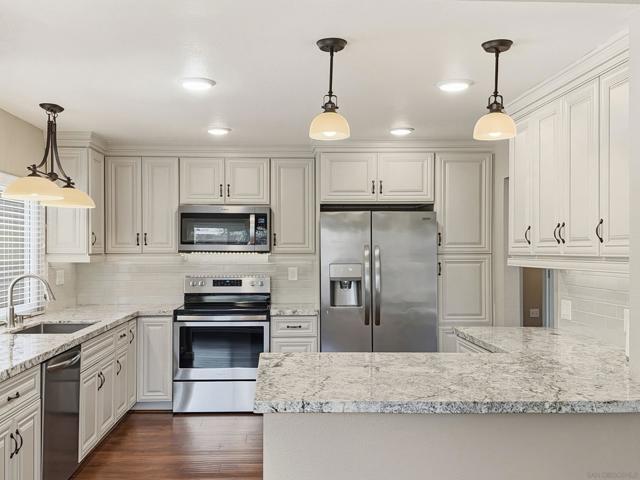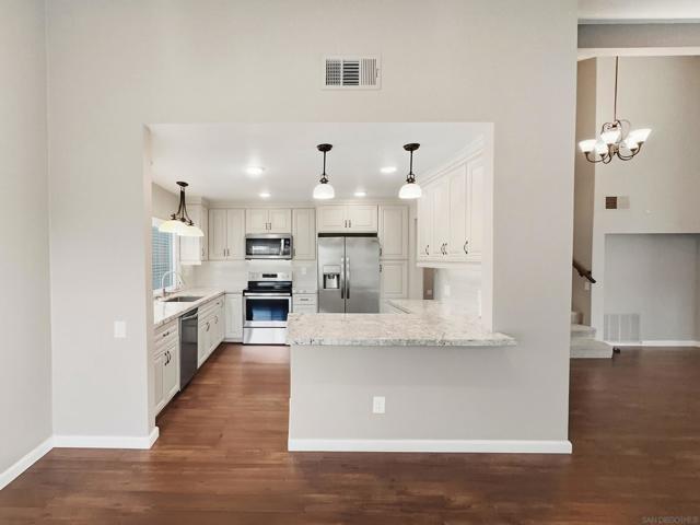 Beautifully updated and ideally positioned at the end of a cul-de-sac, this lovely Rancho Peñasquitos residence blends modern comfort with timeless style. Offering 4 bedrooms, 2.5 baths, and approximately 1,985 sq ft of thoughtfully designed living space, the home welcomes you with soaring vaulted ceilings and abundant natural light. The tastefully updated kitchen features stainless steel appliances, granite countertops, an oversized stainless steel sink, and sleek finishes that elevate both form and function. The nearby family room features a cozy fireplace and seamless access to the patio, creating an effortless indoor-outdoor flow perfect for entertaining or relaxing. Upstairs, the hall bathroom has been beautifully remodeled with a new tub, vanity, flooring, and lighting. The primary bedroom includes a useful bonus area in the converted attic space, perfect for additional storage. The expansive backyard is framed by mature trees and offers generous space to design your dream outdoor oasis, whether that includes a pool, garden, or custom entertaining areas. Additional highlights include owned solar for energy efficiency and long-term value, an EV charger, new roof and exterior painting in 2024. Conveniently located near top-rated schools, parks, shopping, dining, and easy freeway access, this home combines comfort, style, and an exceptional location.