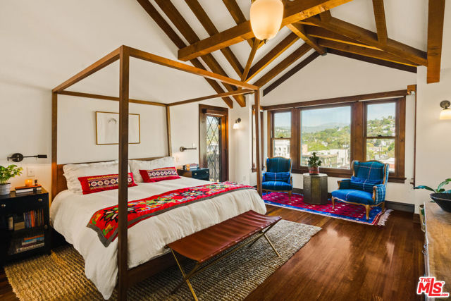 Step into a rare and radiant 1908 Craftsman, perfectly positioned in the vibrant heart of Silver Lake where timeless character meets inspired modern creative living. Thoughtfully and artfully reimagined by architect Juan Felipe Goldstein, this 4-bedroom, 4-bath home is a true one-of-a-kind sanctuary. An added second story elevates the home both literally and figuratively offering sweeping, cinematic views of the surrounding mountains, the iconic Griffith Observatory, and the Hollywood Sign. Every detail has been curated with intention, from the chef's kitchen featuring a Viking stove to the beautifully remodeled bathrooms, dedicated laundry room, and refined finishes throughout. The primary suite is a private retreat, complete with two walk-in closets, a large en suite luxurious bathroom, and a spacious balcony overlooking the energy and charm of Sunset Junction. Designed for seamless indoor-outdoor living, the main level opens to a backyard oasis (with room for a pool!). Entertain effortlessly with a fully equipped outdoor kitchen, expansive deck with covered pergola, and multiple lounge spaces. Find your calm in a peaceful meditation area, or relax in gently swaying hammocks all surrounded by professionally and thoughtfully landscaped grounds. With a separate additional structure offering flexibility for a studio, office, or guest space, and a location that places you just moments from Silver Lake's best restaurants, cafes, farmers markets, and everyday essentials, this home is not just a place to live, but a lifestyle to experience.