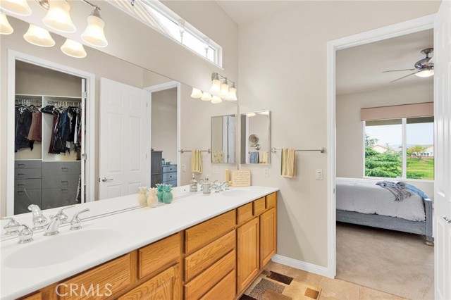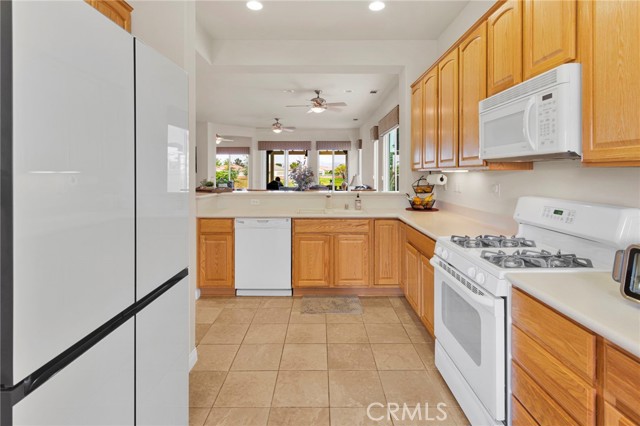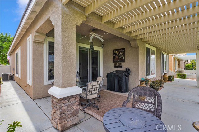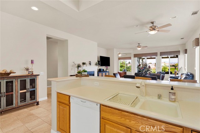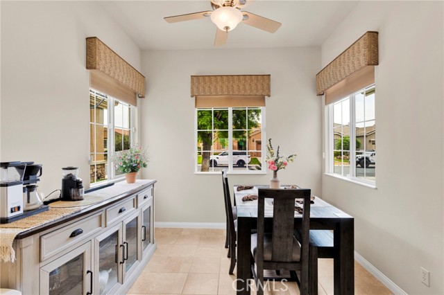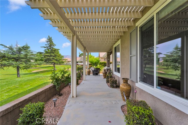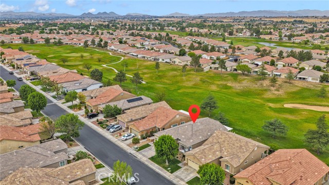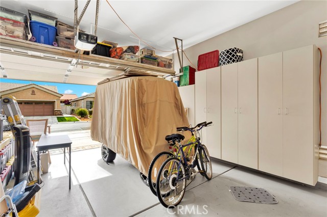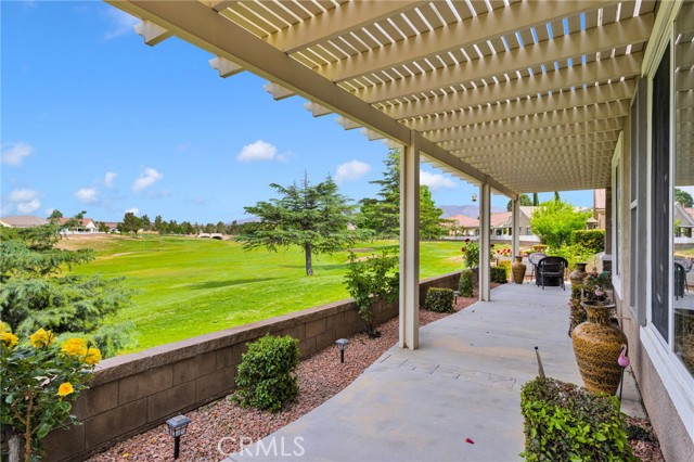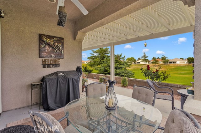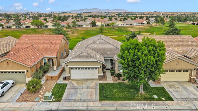 Welcome to this immaculate home in the gated 55+ community of Del Webb Apple Valley, ideally located on a desirable golf course lot. Enjoy wind-protected fairway views that create a comfortable and inviting outdoor setting year-round, along with convenient access to the clubhouse and community amenities. This home truly shows like a model, featuring beautifully cleaned carpets and fresh interior paint throughout. The open, airy floor plan is designed for both comfortable living and effortless entertaining, creating a bright and welcoming space. The primary bedroom closet is enhanced with custom-designed shelving, offering both an upgraded look and exceptional functionality. The garage is thoughtfully appointed with custom upper, lower, and full-height cabinetry, along with extensive built-in storage for organization and ease. The insulated garage door has been recently serviced with new springs and chain, and the motor has been maintained to ensure smooth, reliable operation. Enjoy seamless indoor/outdoor living with the upgraded extended patio, perfectly positioned to take in the protected golf course views—ideal for relaxing or entertaining in comfort. Additional amenities include a garage refrigerator, washer and dryer, living room furniture, and barstools. The home also features cellular shades throughout and a security screen door. Recent upgrades include a newer water heater (approximately 4 years old) and updated toilets. An ADT security system is installed (buyer to activate and connect). Enjoy resort-style living with access to a clubhouse, fitness center, pool, and a vibrant calendar of social events.