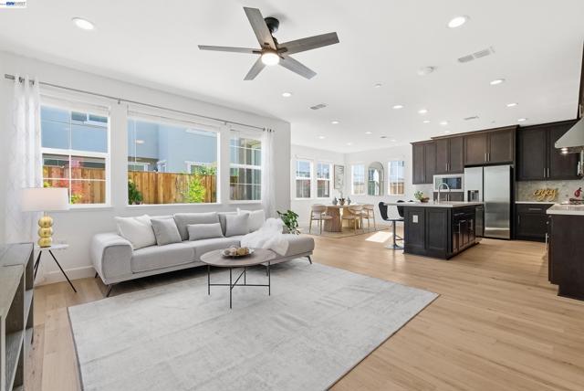 Seller is offering a credit of up to $6,000 toward an interest rate buydown for the buyer! Welcome to this charming NORTH-FACING home in desirable Cordes community. This bright and cozy home features an open floor plan with south-facing kitchen, living, and dining areas that bring in abundant natural light. The upgraded kitchen includes quartz countertops, full mosaic backsplash, modern hardware, and recessed LED lighting. White oak engineered wood flooring enhances the first floor. Upstairs offers a spacious primary suite with barn-style sliding door and well-appointed bath, plus two additional bedrooms. Enjoy a beautifully landscaped backyard with patio surrounded by flowers and trees, perfect for outdoor living. Additional highlights include owned solar, upgraded lighting, ceiling fans, window coverings, and a finished garage with shelving. Over $53K in upgrades. Prime location: steps to Cordes Park and less than 1 minute walk to Langston Community Park behind the property. 2â3 minute walk to top-rated Julius Cordes Elementary (Kâ8), Mountain House High School, Apple shuttle stop, tennis courts, and Cordes Plaza. 10â15 min drive to Costco, Walmart, and shopping in Tracy. A must see!