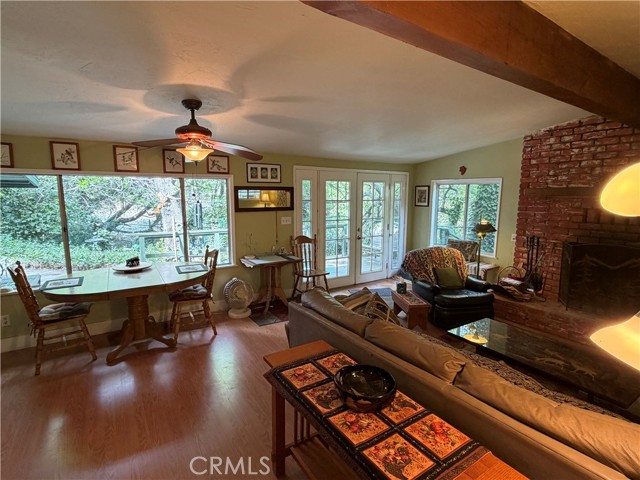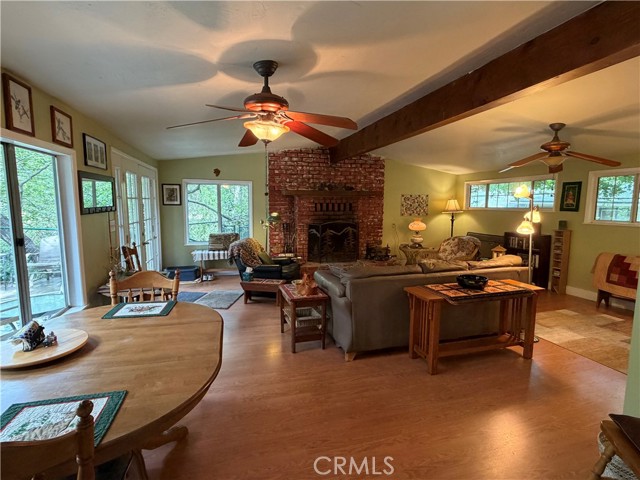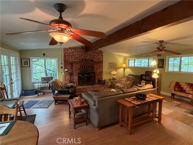 Creekside Escape in Happy Jack – Your Private Retreat in Lytle Creek Looking for a peaceful getaway without the long mountain drive? This charming cabin in the sought-after Happy Jack area of Lytle Creek offers the perfect blend of comfort, nature, and convenience. Set right along a gently flowing stream, this property invites you to slow down and enjoy the calming sounds of water just steps from your door. Inside, you’ll find a warm and inviting living space featuring a wood-burning fireplace, exposed beam ceilings, and durable laminate flooring. A cozy nook provides the perfect spot for morning coffee or a quiet reading corner, while ceiling fans throughout help keep the home comfortable year-round. The dining area offers plenty of space to gather, and the rustic-style kitchen is full of character with knotty pine accents, tile countertops, tile flooring, and a classic wood-burning stove. All appliances are included, making this home move-in ready. Both bedrooms are comfortably sized. The primary bedroom features mirrored closet doors, laminate flooring, and a ceiling fan, while the second bedroom showcases knotty pine walls, tile flooring, and its own fan—ideal for guests or flexible use. The bathroom is thoughtfully updated with a pedestal sink, tub/shower combo, linen storage, and newer fixtures. Step outside to a yard area with gated access to the creek—perfect for relaxing, entertaining, or simply enjoying the peaceful surroundings. Whether you're listening to the water from the deck or unwinding under the trees, this property delivers a true sense of escape. Located just a short 10–20 minute drive from shopping, dining, and freeway access, you’ll enjoy a quiet, tucked-away setting without sacrificing convenience. The Lytle Creek community also offers a community center and senior center with activities and social events. Outdoor recreation is right at your fingertips—fishing, hiking, camping, and picnicking are all nearby. Property Notes: Situated on US Forest Service leased land If you’ve been dreaming of a serene retreat with natural charm and easy access, this Creekside cabin is ready to welcome you home.