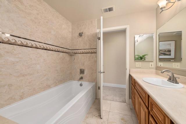Beautiful townhome in prestigious Villas of Almaden. Peaceful & picturesque. Gated with security patrol. Zip up 85 to High Tech employers. Great Schools: Los Alamitos Elementary, Pioneer High & Castillero Middle. Well-designed kitchen with large pantry, an abundance of cabinetry, gleaming quartz countertops, & stainless steel appliances. Versatile bedroom configuration. Two Bedroom suites plus a loft that is perfect for home office, play room--or convert to a 3rd bedroom. Primary suite with large stall shower & expansive dual vanity. 2nd bedroom suite with updated full bath & balcony. Updated hall bath. Stunning living room with vaulted ceiling, fireplace with modern floor to ceiling stone fireplace. Spacious formal dining. Beautiful view, a serene and natural setting. Both decks are newly rebuilt. Central A/C. Huge skylight. Close to HOA amenities--swimming pool, spa, & tennis courts. Near Clubhouse with ping pong, racquetball, billiards, lounge, & dining area. Lots of nearby guest parking & security gate access. Nearby Jeffrey Fontana Park with playground & dog park, Guadalupe Oak Grove park, T.J. Martin park with playground. About 1 1/2 miles to Almaden Lake park with picnic & BBQ areas, bocce ball, catch & release fishing, hiking/equestrian/biking trails.