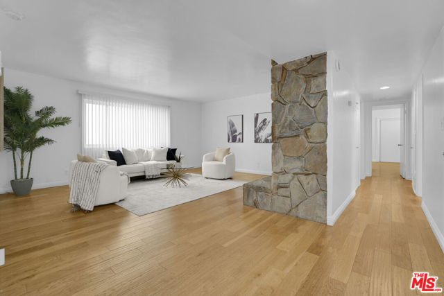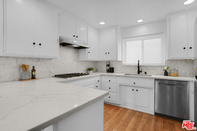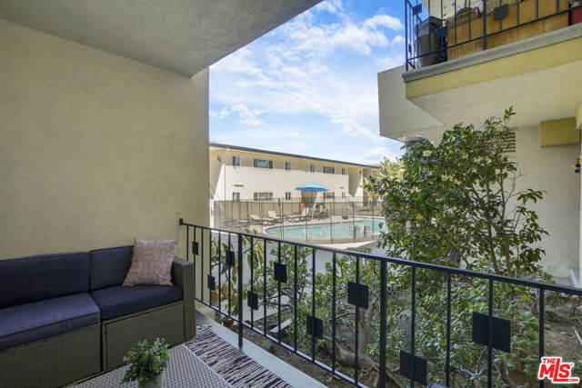 Welcome to this rare and spacious 3-bedroom, 2-bath residence in the heart of highly desirable Ladera Heights. Located on a quiet, tree-lined street in a beautifully maintained community, this bright and inviting condo offers over 1,600 square feet of comfortable living space. The home features in unit laundry, a generous open living area with a cozy gas-burning fireplace, large windows that fill the space with natural light, and a private balcony overlooking the peaceful courtyard and sparkling community pool. The kitchen is designed for both functionality and style, offering an island seating area, granite countertops, stainless steel appliances, stone backsplash, and abundant cabinetry. The spacious primary suite includes two closets with built-in shelving and a well-appointed en-suite bathroom with dual sinks and granite counters. Engineered wood flooring runs through the bedrooms, living room, and hallway, creating a warm and cohesive feel throughout the home. Additional highlights include two side-by-side parking spaces in a covered garage, two storage units, and access to a community room with a full kitchen perfect for hosting gatherings or special events. Residents also enjoy beautifully landscaped grounds featuring a relaxing pool, grassy areas, and mature trees that create a tranquil setting. This is a rare opportunity to own a spacious condo in one of Ladera Heights' most desirable communities, conveniently located near shopping, dining, and major commuter routes.