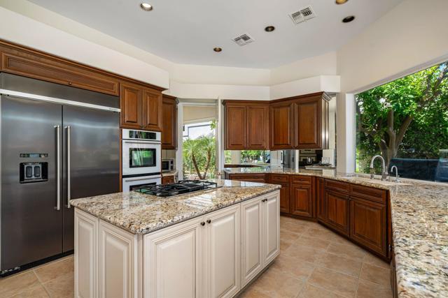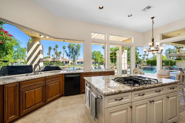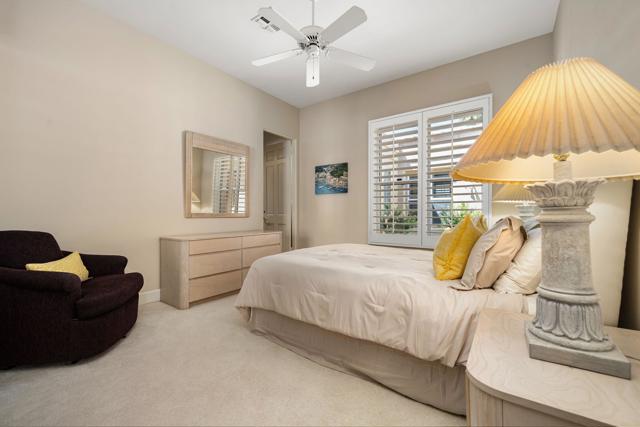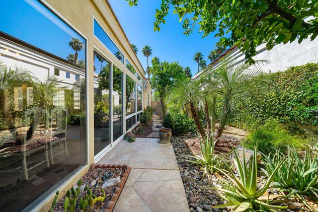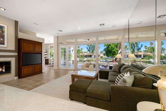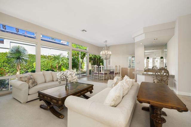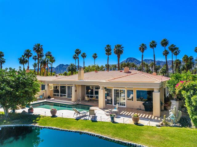 Located in the crown jewel of Coachella Valley, Indian Wells, this home is among the largest currently available in Desert Horizons CC. The uniquely situated property lies between an 18-hole putting green directly across the street, and a tranquil, poolside pond at the rear, creating the essence of a private resort within a resort. Inside, architectural qualities include an abundance of windows filling the interior with natural light, high ceilings, large, roomy rooms, an exceedingly spacious primary bedroom/bath suite, and 3 fireplaces. Religiously maintained by the original owner, an important series of upgrades include complete patio and courtyard redecking (2004), refreshed in 2014; upgraded kitchen cabinetry (2012) and stovetop (2020); new A/C units (2014) with one replaced (2024); a Navien tankless water heater (2025). Laundry room includes washer and dryer. The very sizeable patio has multiple lounging areas, with the pool ideally positioned for all-day sun exposure. The garage offers extensive built-in storage cabinetry, epoxied floors, and accommodates two full-size vehicles plus a golf cart, which is INCLUDED IN SALE!