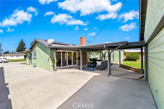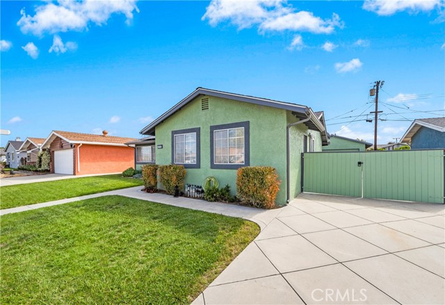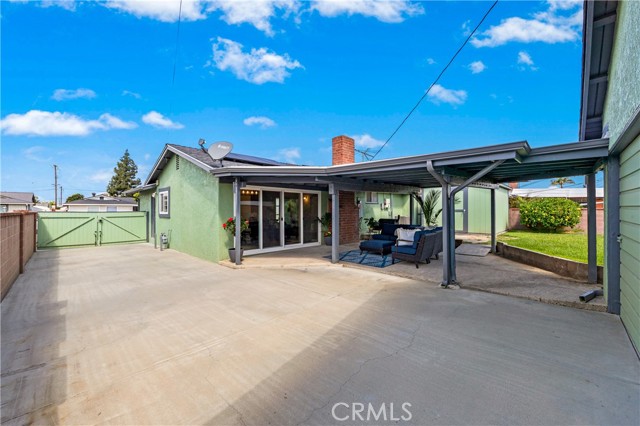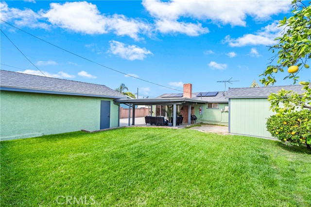 Tucked midway down a quiet cul-de-sac in one of Buena Park’s most beloved neighborhoods, this adorable single-level 3-bedroom, 2-bath home offers the best value in the tract and located within the highly sought-after Kennedy High School boundaries, rated 9/10. Bright, cheerful, and move-in ready, the home features fresh, long-lasting Cool Life exterior coating, a newer roof with seamless gutters, copper plumbing, owned solar, a new Lennox Gold HVAC system, an updated 200 amp main panel with 50 amp subpanel in garage including a 220 outlet for RV. Sewer clean-out and lined piping from under house to street, and fiberoptic internet. The kitchen is charming, with clean white countertops, beautiful wood cabinetry, indoor laundry, and direct side-yard access. The cozy dining area opens through a triple-wide slider to the true heart of the home: an expansive approximately 20x20 fully covered outdoor living space with beautiful wood beams and year-round protection from sun and weather. The backyard creates the feeling of a private compound, perfect for children, pets, gardening, or peaceful downsizing. Between the covered patio, detached rear garage, and oversized 10x20 Tuff Shed is a lush raised grassy play yard where kids can safely run and play within sight for hours. Fruit trees, including Meyers Lemon, Eureka Lemon and grapefruit, add charm and function, while the east-facing yard enjoys beautiful natural light throughout the day. A rare standout feature is the 77-foot driveway with exceptional RV potential, including approximately 56 feet of fenced drive access ideal for RVs, boats, trailers, or extra vehicles, plus convenient side entry directly into the kitchen. On quiet evenings, enjoy views of the Knott’s Berry Farm fireworks from your own backyard. Perfect for a young family drawn to award-winning schools, a retired couple seeking easy single-level living, or anyone wanting space to garden, play, entertain, and truly enjoy the outdoors. This home offers exceptional flexibility in a tract where current competing homes are priced above $1,000,000. At $925,000, this is truly the best value in this sought after million-dollar neighborhood.