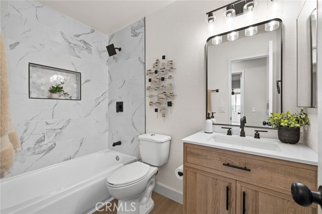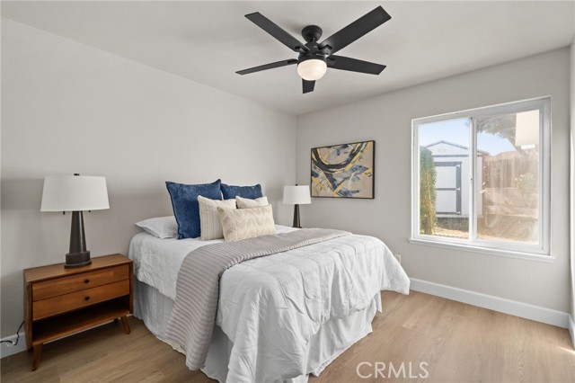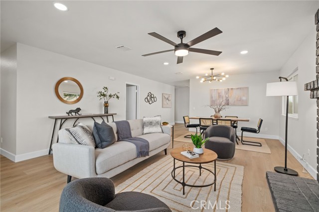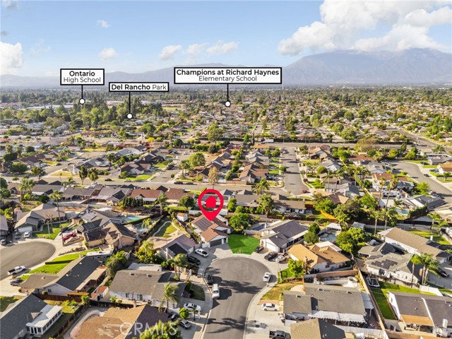 COMPLETELY REMODELED SINGLE-STORY CUL-DE-SAC HOME WITH 27 PAID OFF SOLAR PANELS - This single-story residence features 4 bedrooms and 2 bathrooms on a large pie-shaped lot at the end of a cul-de-sac with mature landscaping. The home includes 27 paid-off solar panels, a newer AC and furnace, and a whole-house fan. The open floor plan is finished with New luxury vinyl plank flooring, New baseboards, New recessed lights, and New interior and exterior paint. The kitchen features New wood shaker soft-close cabinets and quartz countertops. Both bathrooms include New vanities and New tile. All rooms have New ceiling fans and dual-pane windows. The oversized primary suite includes a walk-in closet and a private patio. The layout includes a sunroom and a large wrap-around patio, with one bedroom opening directly to the sunroom, perfect for a home office or playroom. Conveniently located near the 60 and 71 freeways, Ontario Airport, and walking distance to shopping and schools. Come, See This Home Before It's TOO Late!