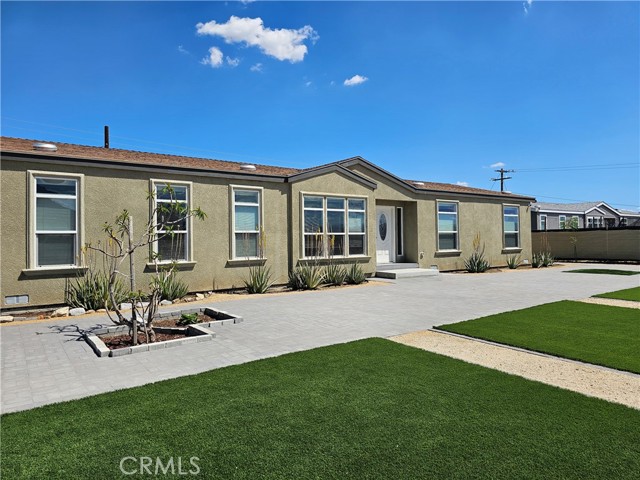 Beautiful ranch-style manufactured home on a permanent foundation with 433 filings built in 2021, 4 bedrooms, two bathrooms, approximately 1,980 square feet. Family Rooms, Open Concept Kitchen, and the Main Bathroom offer dual sinks, a walk-in shower, and a jacuzzi tub. A Separate Laundry Room. Central air/heating. This great turnkey home is on a large lot and offers many updates, including static grasses, a newer concrete Paver, and more. Close to the 215 freeway and 15 Freeway. The property has many benefits. Schedule your showing today!