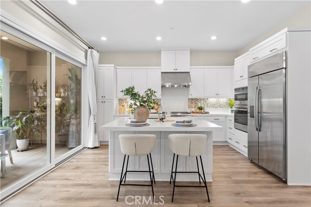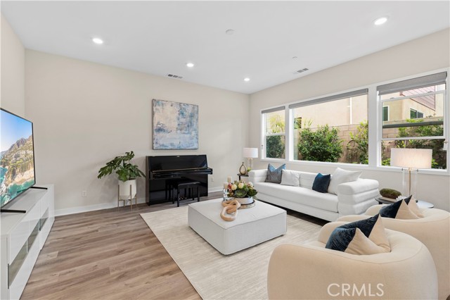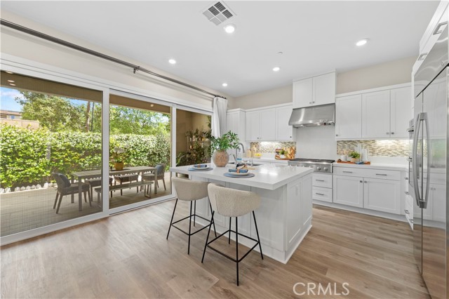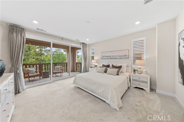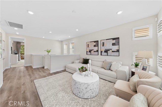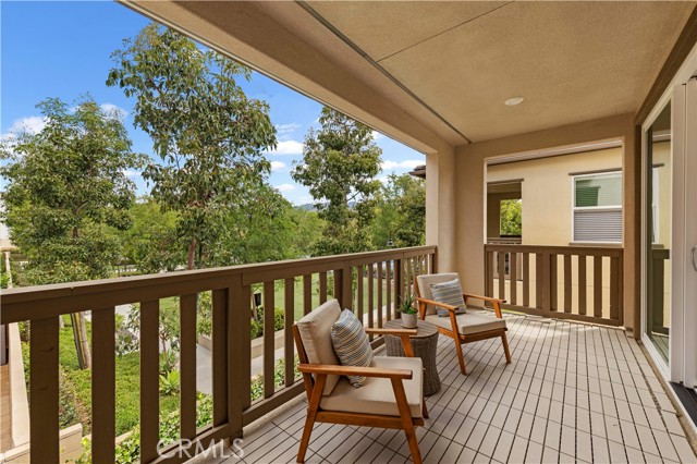 Nestled in the highly desirable Serrano Summit within Lake Forest, this exceptional home enjoys a hillside setting with scenic surroundings and a peaceful atmosphere. Ideally located just minutes from shopping and dining at Foothill Ranch Towne Centre, it offers the perfect balance of privacy and convenience. This beautifully appointed two-story residence offers a refined blend of comfort, functionality, and natural elegance. The main level features a desirable bedroom and full bathroom, ideal for guests or multi-generational living. A dedicated dining area creates an inviting space for gatherings, while the open-concept living room and kitchen provide a seamless flow for modern living. The living room is filled with natural light through expansive windows, while the kitchen opens to the backyard through a large glass sliding door. Thoughtfully upgraded, the kitchen showcases high-quality countertops, premium finishes, and a built-in GE Profile build-in refrigerator. The backyard is a true sanctuary—lush, private, and beautifully curated. A full wall of blooming star jasmine creates a stunning natural backdrop, filling the air with a gentle, fragrant aroma. Surrounded by vibrant greenery, this outdoor retreat offers a peaceful escape, perfect for quiet mornings, relaxed evenings, or elegant outdoor entertaining. Upstairs, a spacious loft provides flexible living space, ideal as a family room, office, or potential fifth bedroom. The primary suite features a private balcony with serene park views and a spa-inspired bathroom with dual vanities, two walk-in closets, a soaking tub, and an oversized walk-in shower with seating. Two additional bedrooms complete the upper level, including one with its own private balcony. With no rear neighbors and a park directly behind, the home offers rare privacy and openness. Additional highlights include a driveway for convenience and fully paid-off solar panels, offering energy efficiency and long-term savings on electricity. Residents of Serrano Summit enjoy access to resort-style amenities, including a beautifully designed clubhouse, sparkling pool and spa, outdoor gathering spaces, and scenic walking trails—all enhancing the elevated lifestyle this community is known for. A rare opportunity to own a home that blends elegance, comfort, and a truly exceptional setting.